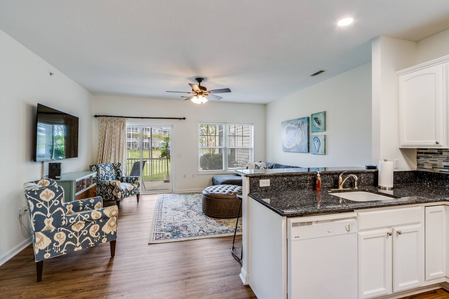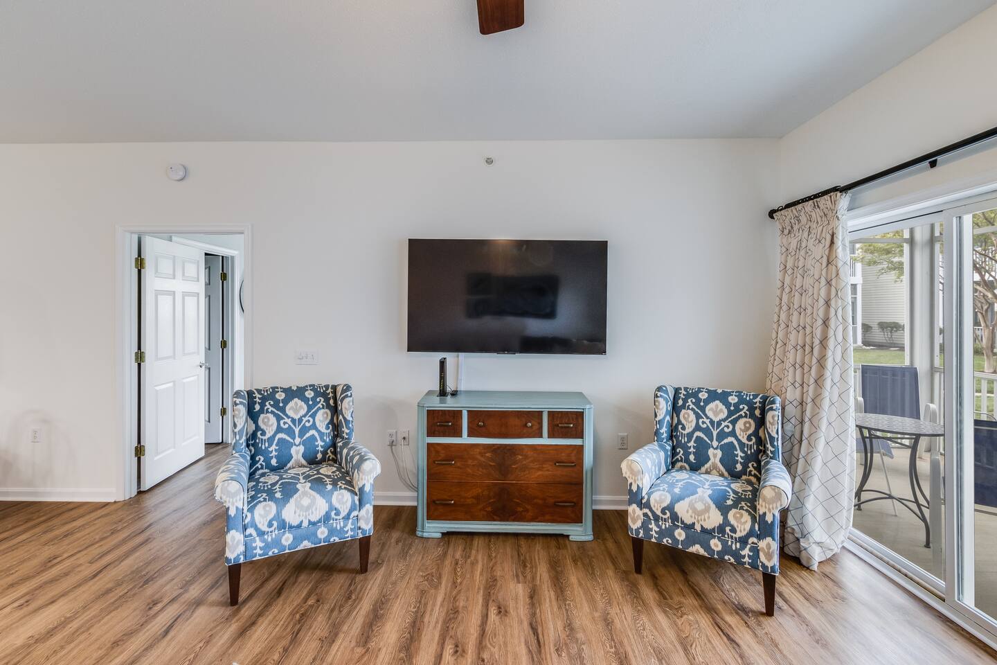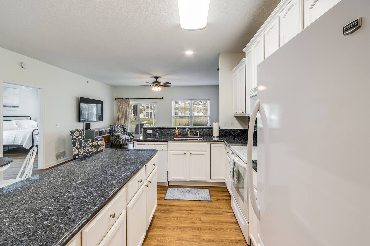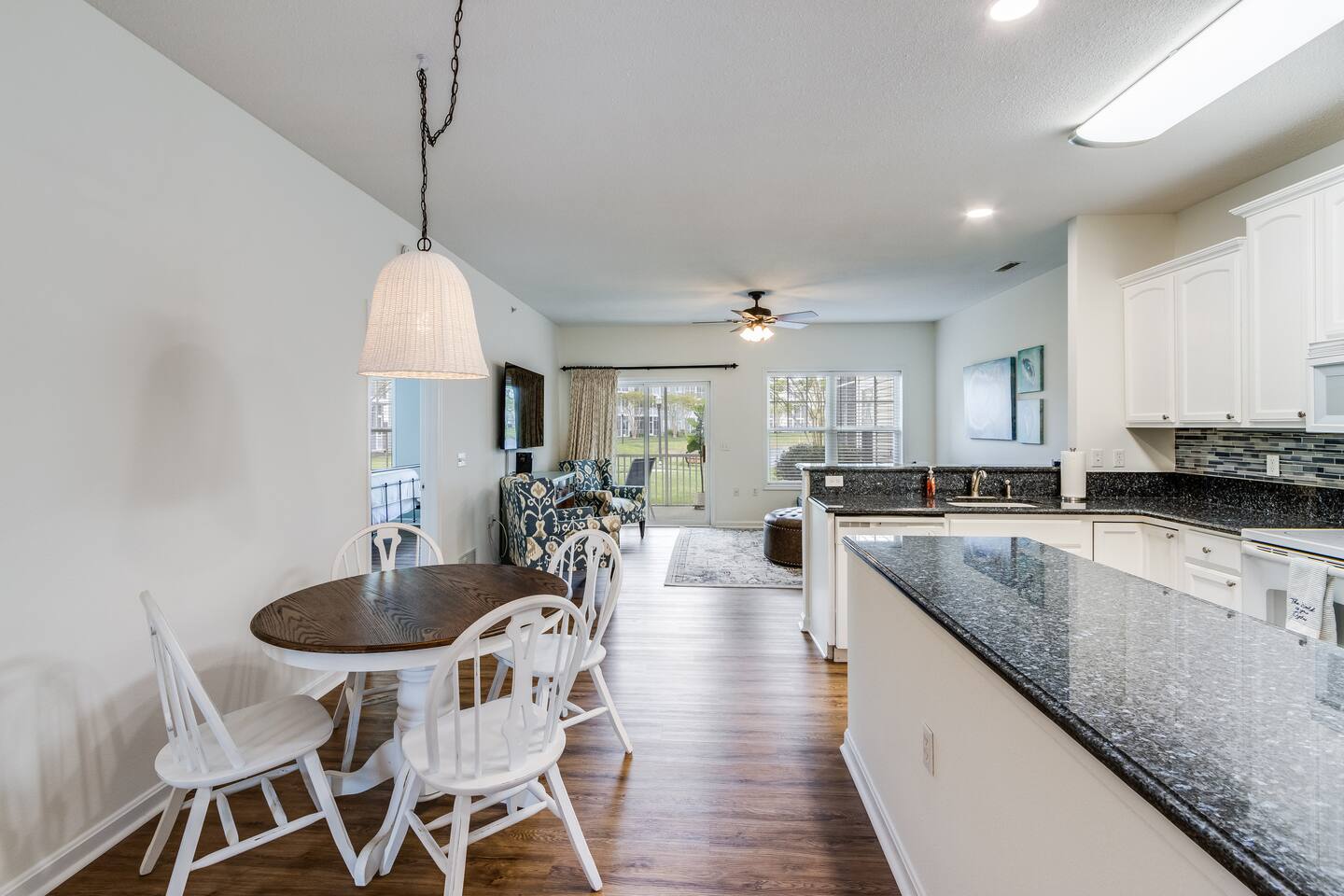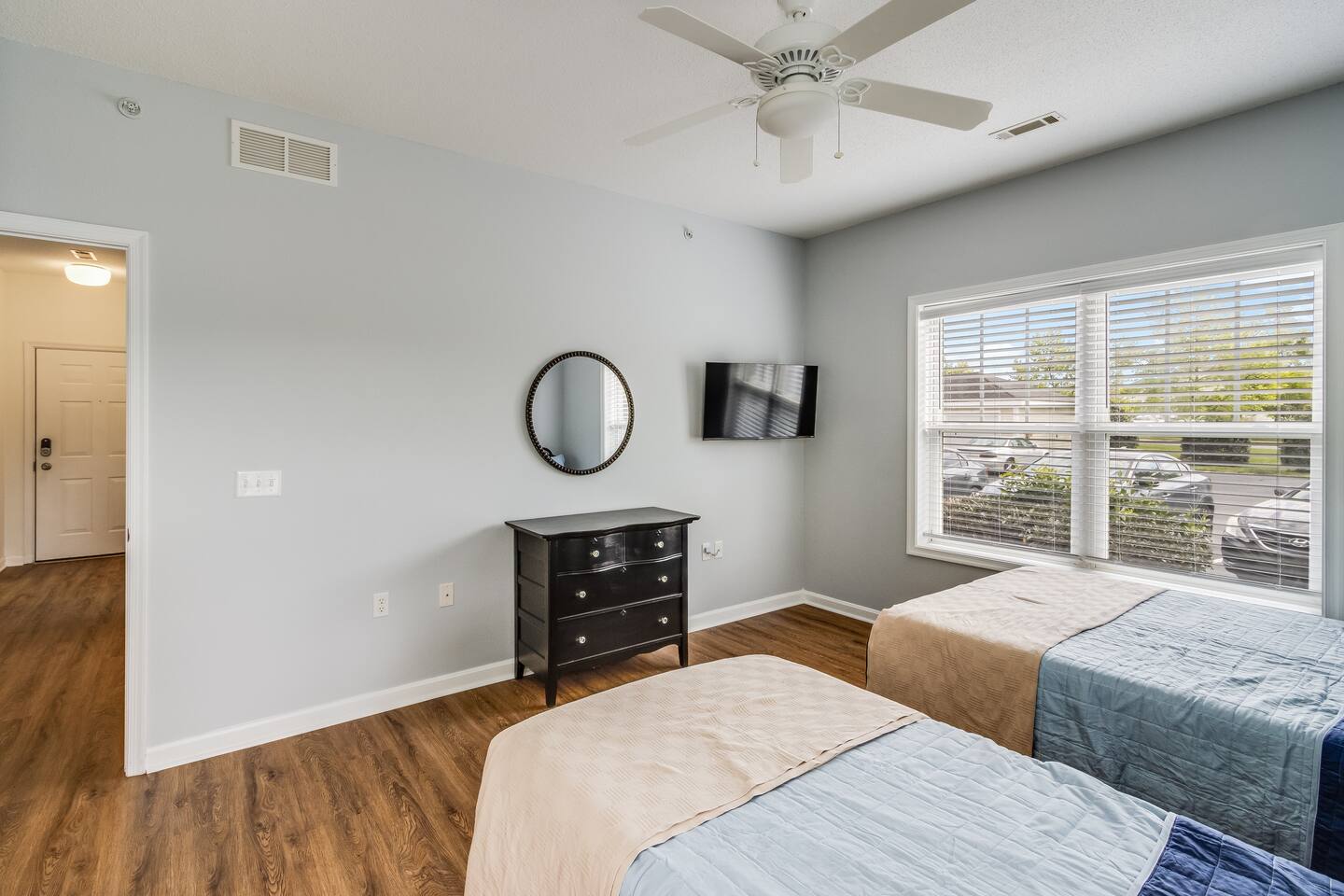 Guests will have access to the whole condo along with use of community amenities including 2 community pools(open seasonally), tennis courts, and playground. ** Pools Open for 2025 Season - May 23rd ** Closing Date - Sept 14th There is also a screened in outdoor patio with a pond view to relax on and a walking path around the pond.