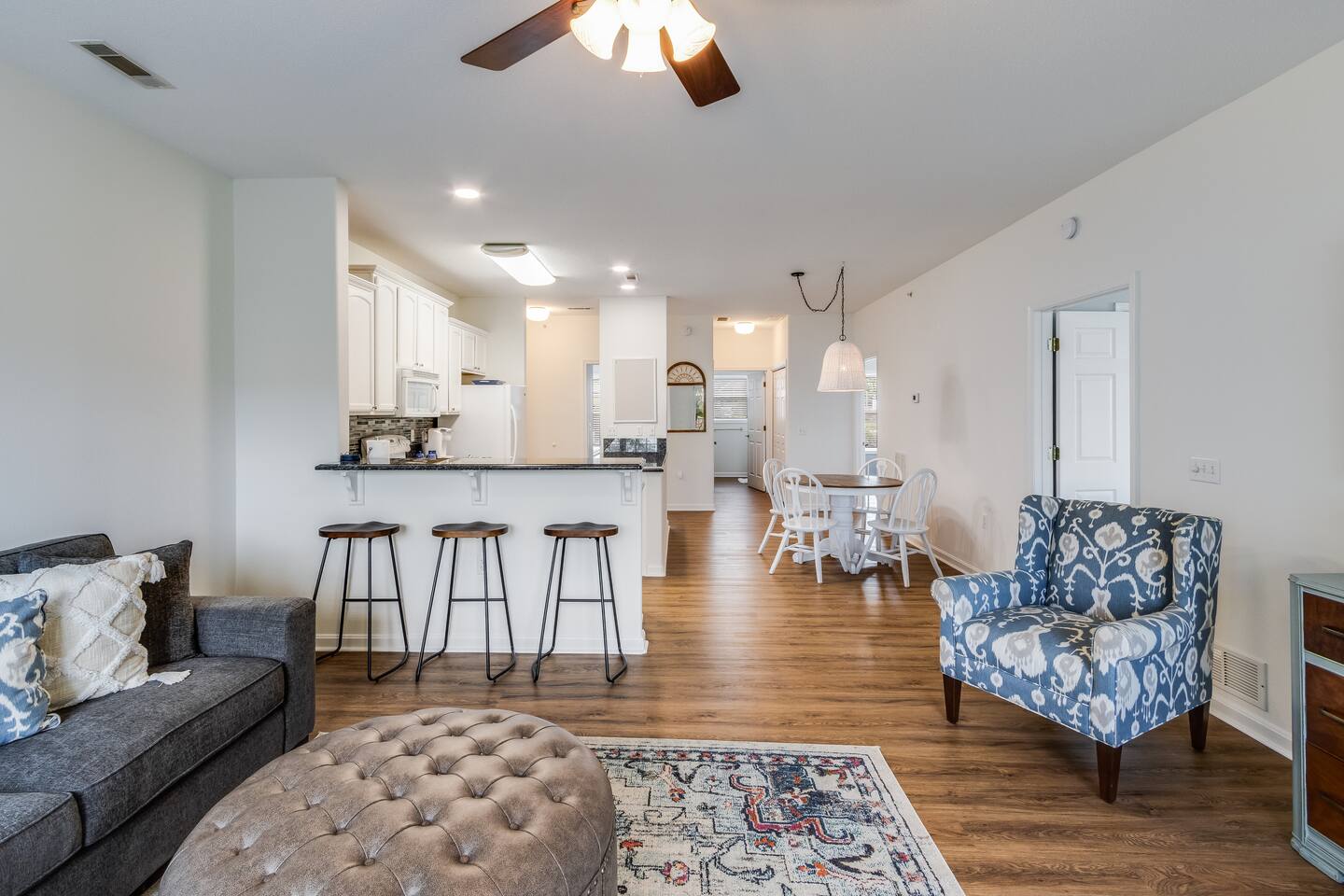 By booking this place, you are agreeing to abide to our House Rules. (These are not meant to scare/intimidate anyone, but just to ensure that we are being transparent and that our guests are treating our properties with respect). **Guest must be at least 25 years of age to book. **It is expected that you treat our place with respect, and everything is put back the way it was when you arrived and all messes cleaned up. **No PETS policy per Condo Association Rules **No PARTIES in the unit per Condo Association Rules **No extra overnight guests unless on the reservation or approved by hosts. If you violate this rule, the fee is $25 per extra guest per night with possible eviction. **QUIET HOURS - 10pm-8am - Please be respectful of neighbors **Absolutely NO SMOKING/VAPING in the unit!!! ** Smoke detectors are sensitive - please turn on the fan when you are cooking. ** Checkout is 10am. * Sorry no late checkouts in the Summer Season (Memorial Day-Labor Day) -Please be respectful of our inspection team and cleaners' tight schedules. ** Guest will be charged for any damage **Please do not put inside furniture outside **No trash should be left outside unit door, on porch, or in walkways. Household trash/recycling must be disposed of in appropriate dumpsters located in the parking lot. **No clothes, towels, blankets, etc., are permitted on the front railings for drying or airing. **Absolutely no candles should be used in this property! ** Pool Rule - Personal items may be used to reserve either one lounge chair or one table while you are actively using the pool. However, clustering items to reserve both a table and a lounge chair at the same time is not permitted — please be courteous to other pool-users. **PLEASE NOTE - We supply a start of some toilet paper rolls, paper towels, garbage bags, dish & hand soap, and dish & laundry detergent for your stay - once they run out, it's on the renter to replenish as needed. **LONGER STAYS**(monthly) -It is mandatory that after 15 days we will come to inspect the rental. After the first inspection, we will then be checking every 30 days for the remainder of your stay. - Toiletries/supplies are fully stocked upon arrival - once they run out, it is on the renter to replenish as needed.