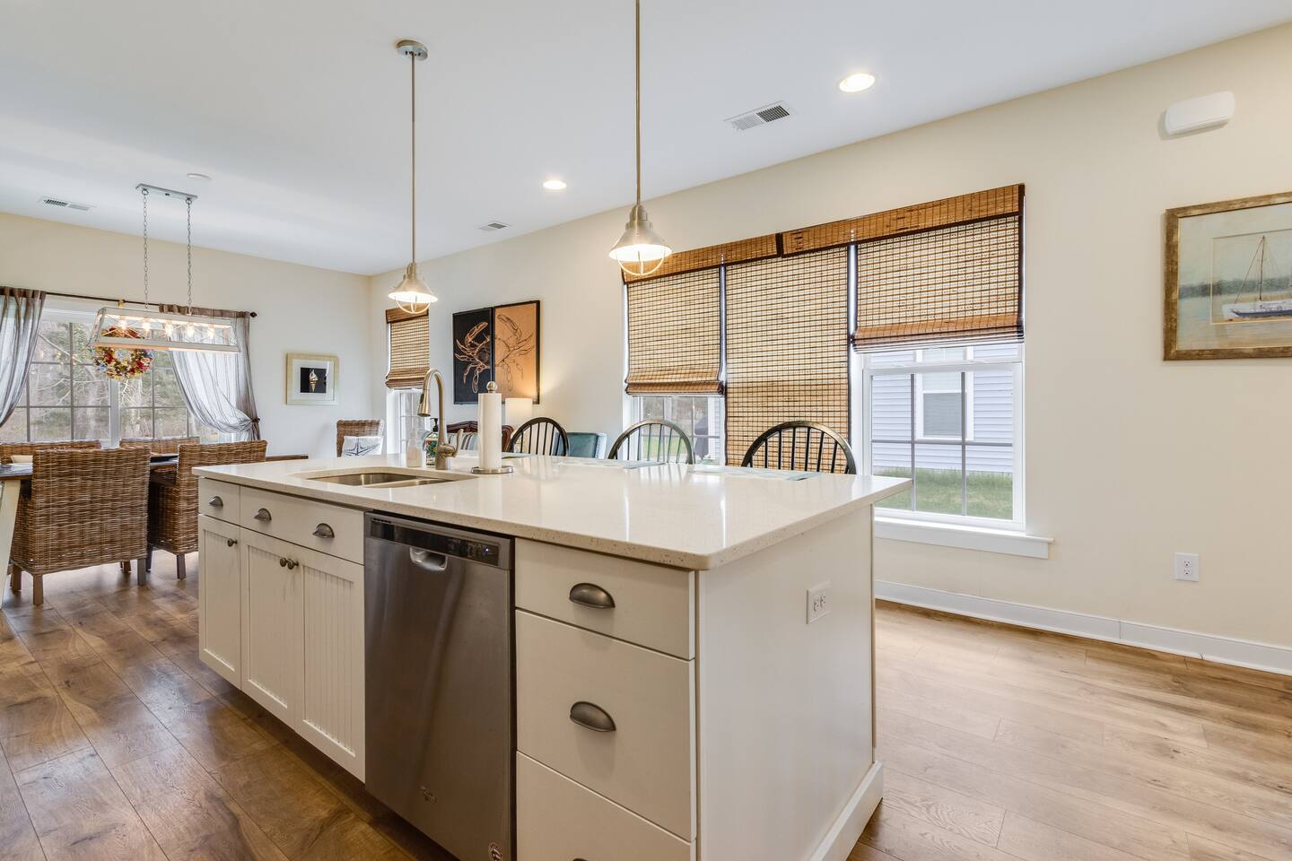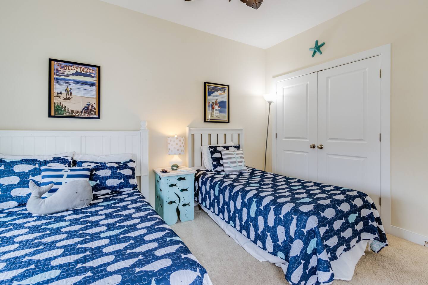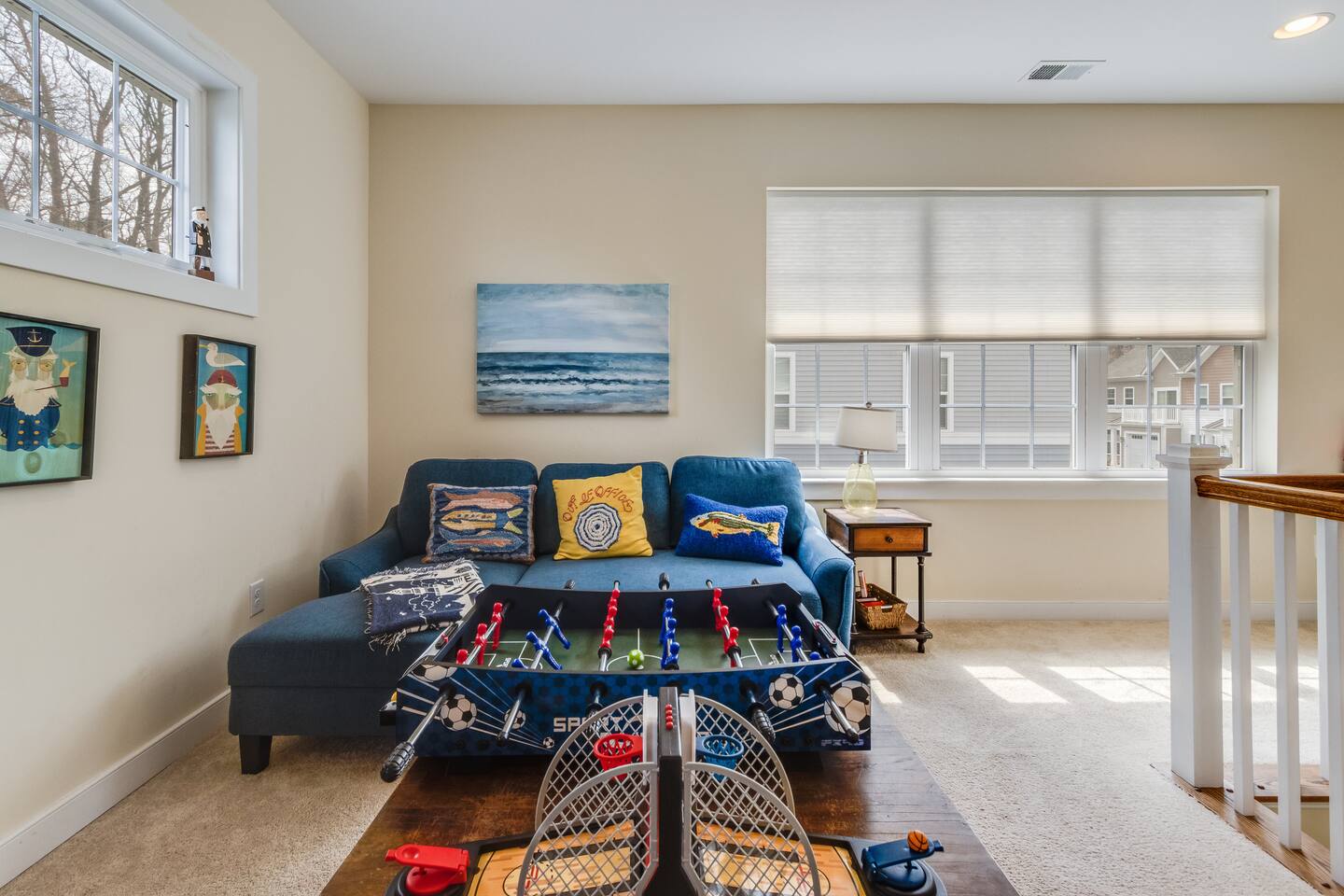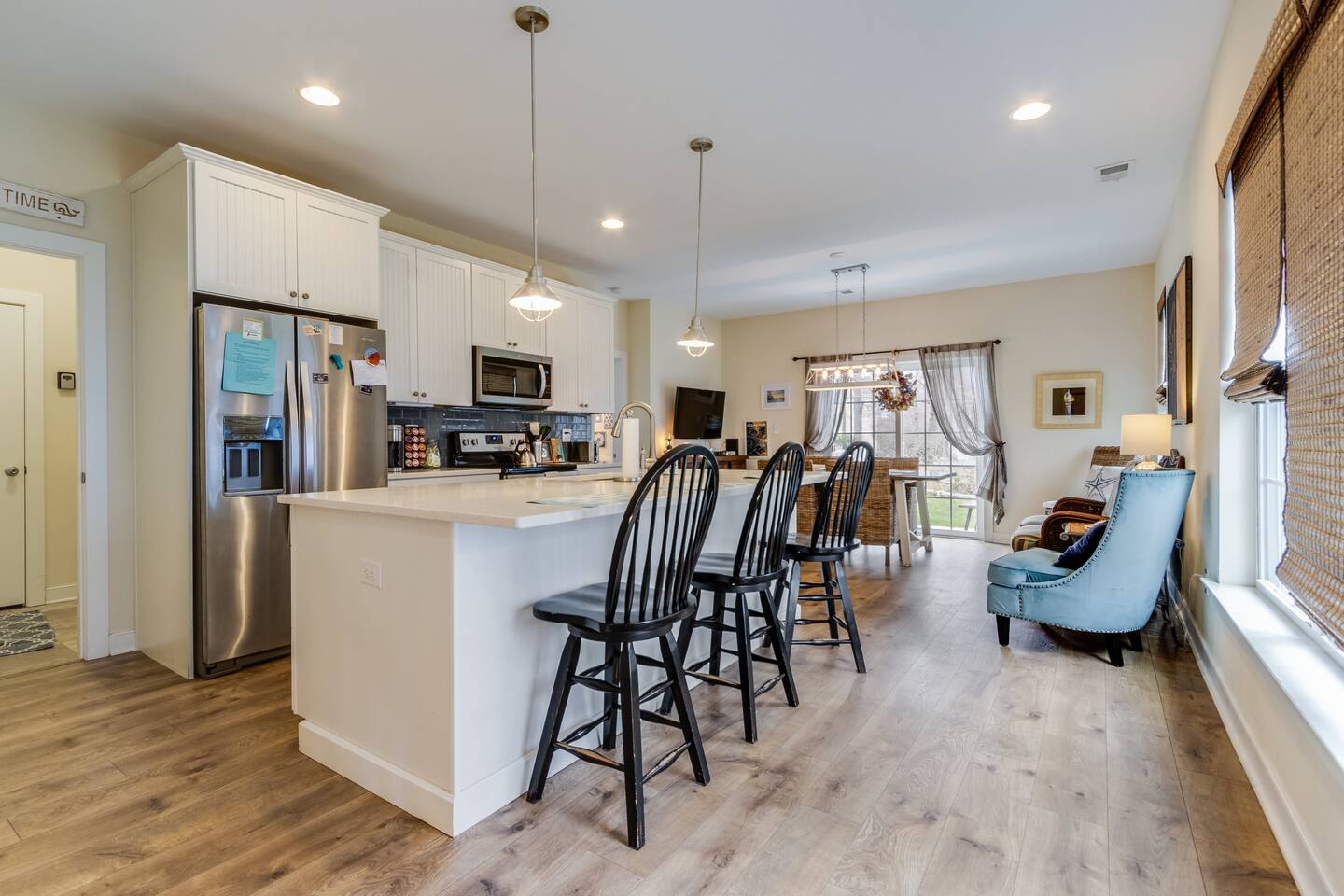 *This property can be rented monthly in the off season (Sept-April) - please submit an inquiry. - Please note - Monthly discounts are not available during the summer season (Memorial Day through Labor Day). *All guests must be 25 years old, except for children with parents. **DEL 302 Management standard: -Linens and towels are included -Starter amounts of toilet paper for each bathroom, paper towels, trash bags, dishwasher pods, laundry detergent/pods, hand soap at each sink, and dish soap at the kitchen sink. Also, supply shampoo, conditioner, and body wash in the bathrooms. -Guests are responsible for providing anything they need beyond the starter amounts provided. Hide away at this lovely townhome, just minutes from local beaches, golf courses, and family attractions that are sure to make your stay unforgettable! - Community Outdoor Pool Directly Across From House *Pool Open Memorial Day to Labor Day - Walk to Local Restaurants, Spas, & Yoga Studio Bedroom 1: King Bed Bedroom 2: Queen Bed Bedroom 3: Full Bed, Twin Bed Loft - Game Room Additional Sleeping: Pack 'n Play - use at own risk OUTDOOR LIVING: 2 adult bikes, 2 boogie boards, beach chairs, beach umbrella, walk to restaurants, ice cream shops, yoga studio, mini-golf, kayaking, & playground. (Playground located behind community). INDOOR LIVING: Smart TVs w/ streaming services, desk w/ chair, arcade games, video game console, tabletop foosball, DVD player, DVD collection, games, puzzles, dining table, ceiling fans. KITCHEN: Fully equipped, stainless steel appliances, microwave, Keurig coffee maker, toaster, blender, Crock-Pot, dishware/flatware, cooking basics, high chair, kitchen island (3 stools). GENERAL: Free WiFi, washer/dryer, linens, bath & beach towels, air conditioning, keyless entry, cleaning essentials. SUITABILITY: Step-free access, bedroom & bathroom on first floor, walk-in shower FAQ: Linens and towels provided, Ring doorbell camera at front entrance, dogs welcome w/ $200 pet fee (2 dogs max, no cats) PARKING: Driveway (2 vehicles, can put 3rd vehicle parallel behind the other 2) -NOTE: Due to Ocean View regulations, the number of vehicles parked at this property must be equal to or less than the number of bedrooms. For this reason, no more than 3 vehicles can be parked here.