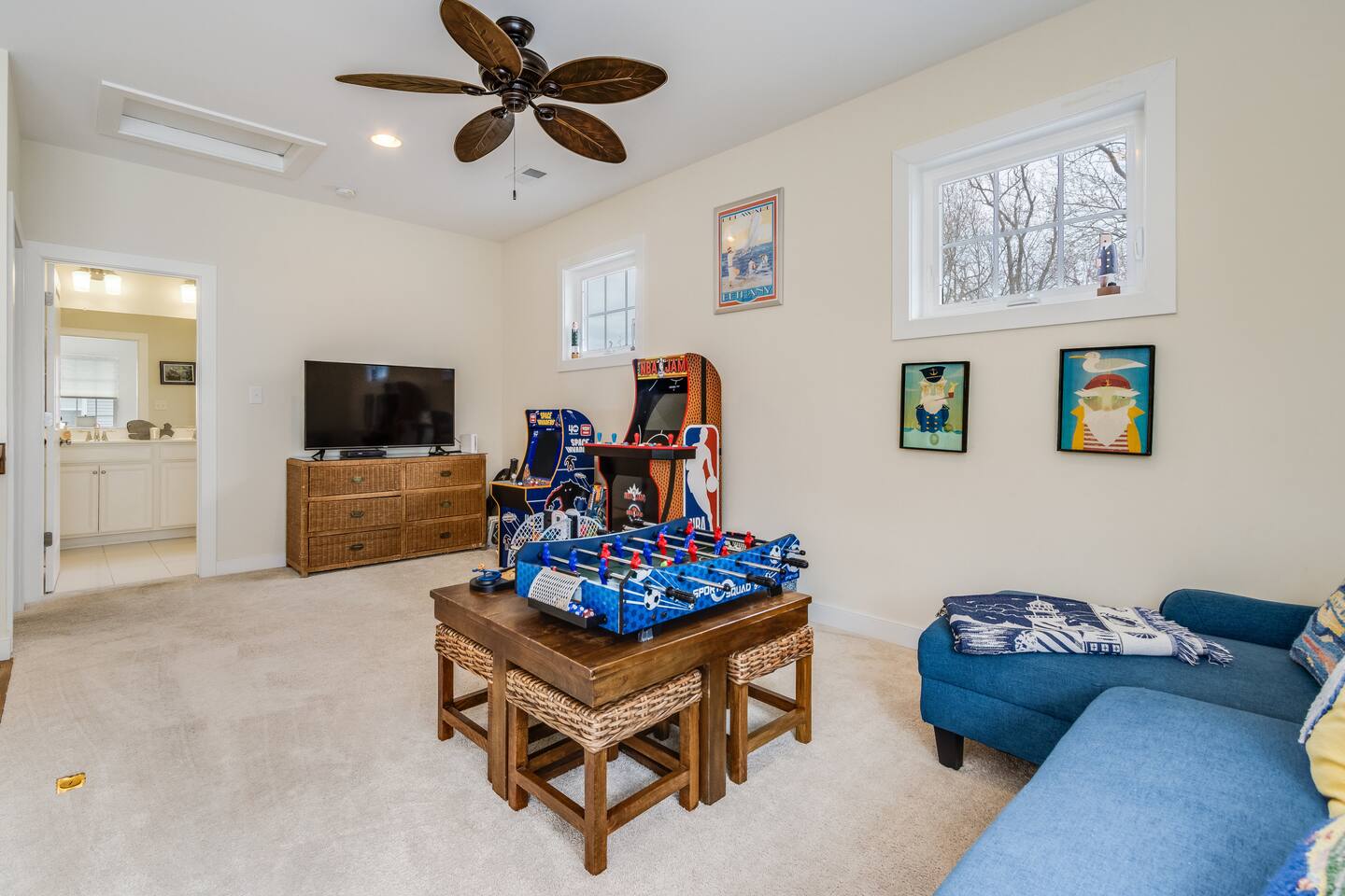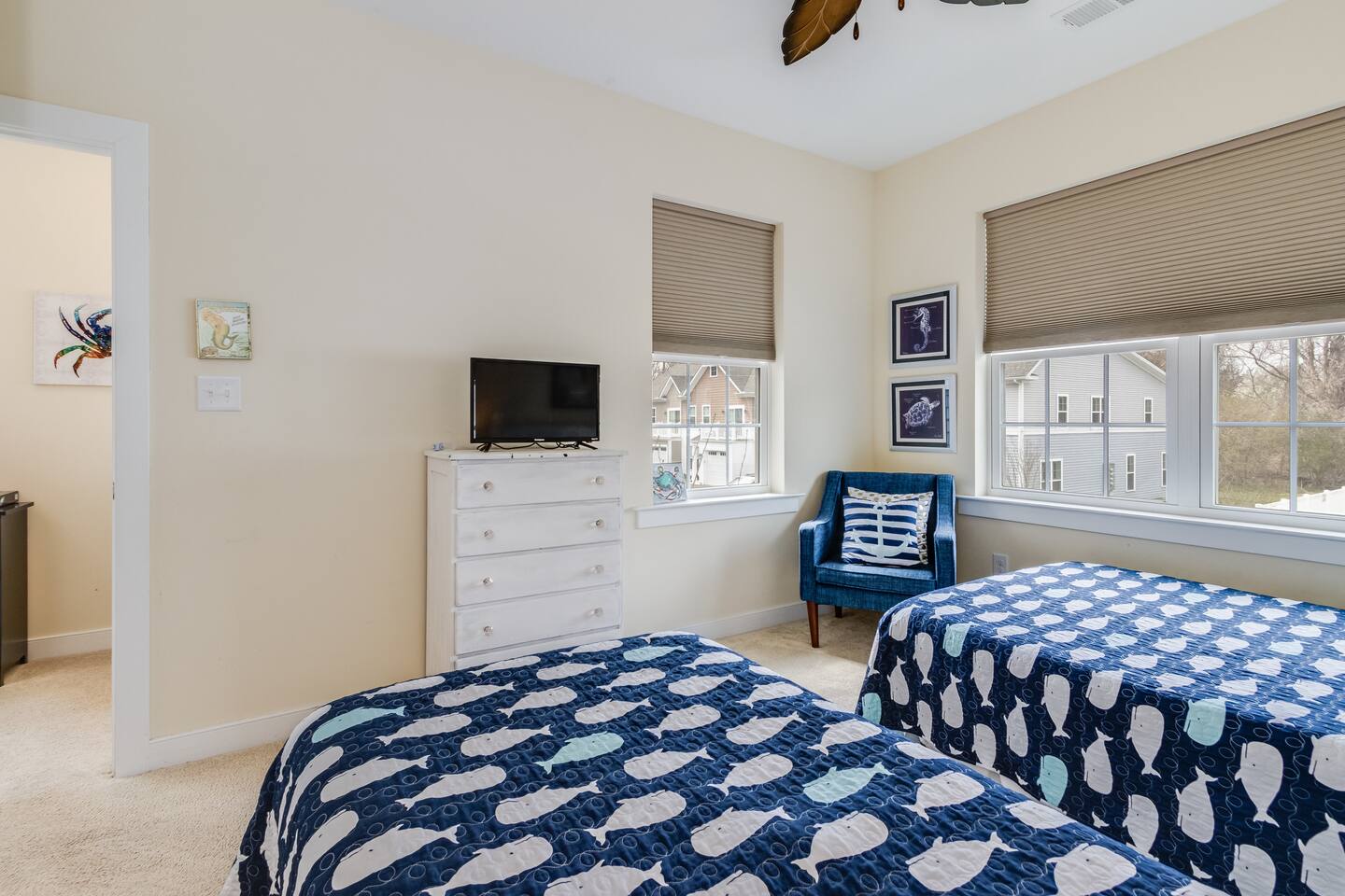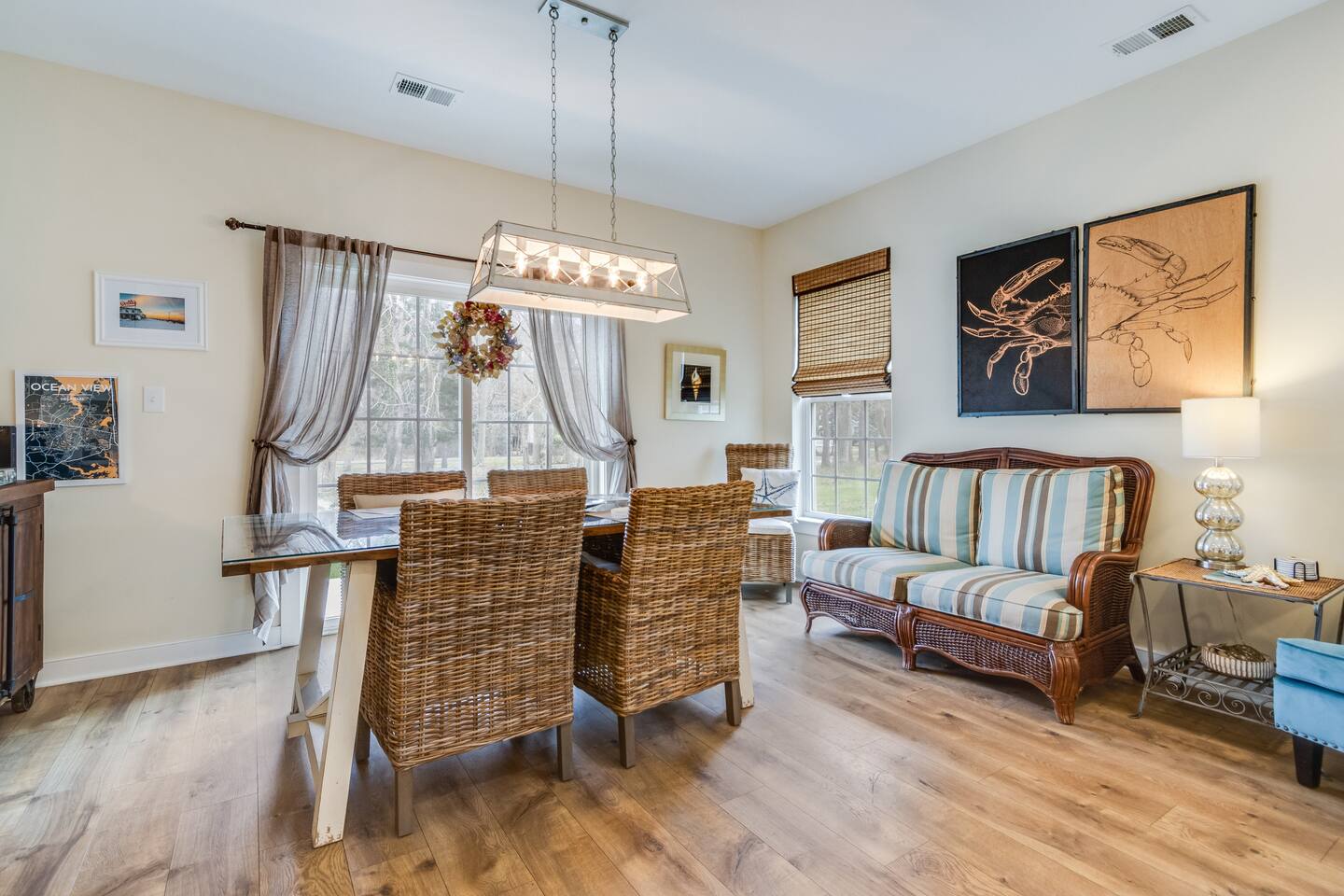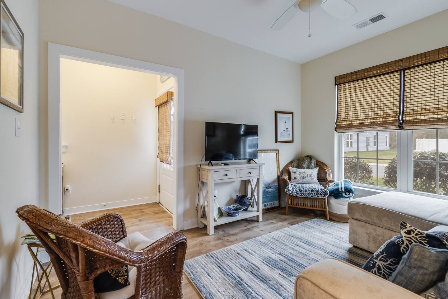 *This property can be rented monthly in the off season (Sept-April) - please submit an inquiry. - Please note - Monthly discounts are not available during the summer season (Memorial Day through Labor Day). *All guests must be 25 years old, except for children with parents. **DEL 302 Management standard: -Linens and towels are included -Starter amounts of toilet paper for each bathroom, paper towels, trash bags, dishwasher pods, laundry detergent/pods, hand soap at each sink, and dish soap at the kitchen sink. Also, supply shampoo, conditioner, and body wash in the bathrooms. -Guests are responsible for providing anything they need beyond the starter amounts provided. Hide away at this lovely townhome, just minutes from local beaches, golf courses, and family attractions that are sure to make your stay unforgettable! - Community Outdoor Pool Directly Across From House *Pool Open Memorial Day to Labor Day - Walk to Local Restaurants, Spas, & Yoga Studio Bedroom 1: King Bed Bedroom 2: Queen Bed Bedroom 3: Full Bed, Twin Bed Loft - Game Room Additional Sleeping: Pack 'n Play - use at own risk OUTDOOR LIVING: 2 adult bikes, 2 boogie boards, beach chairs, beach umbrella, walk to restaurants, ice cream shops, yoga studio, mini-golf, kayaking, & playground. (Playground located behind community). INDOOR LIVING: Smart TVs w/ streaming services, desk w/ chair, arcade games, video game console, tabletop foosball, DVD player, DVD collection, games, puzzles, dining table, ceiling fans. KITCHEN: Fully equipped, stainless steel appliances, microwave, Keurig coffee maker, toaster, blender, Crock-Pot, dishware/flatware, cooking basics, high chair, kitchen island (3 stools). GENERAL: Free WiFi, washer/dryer, linens, bath & beach towels, air conditioning, keyless entry, cleaning essentials. SUITABILITY: Step-free access, bedroom & bathroom on first floor, walk-in shower FAQ: Linens and towels provided, Ring doorbell camera at front entrance, dogs welcome w/ $200 pet fee (2 dogs max, no cats) PARKING: Driveway (2 vehicles, can put 3rd vehicle parallel behind the other 2) -NOTE: Due to Ocean View regulations, the number of vehicles parked at this property must be equal to or less than the number of bedrooms. For this reason, no more than 3 vehicles can be parked here.