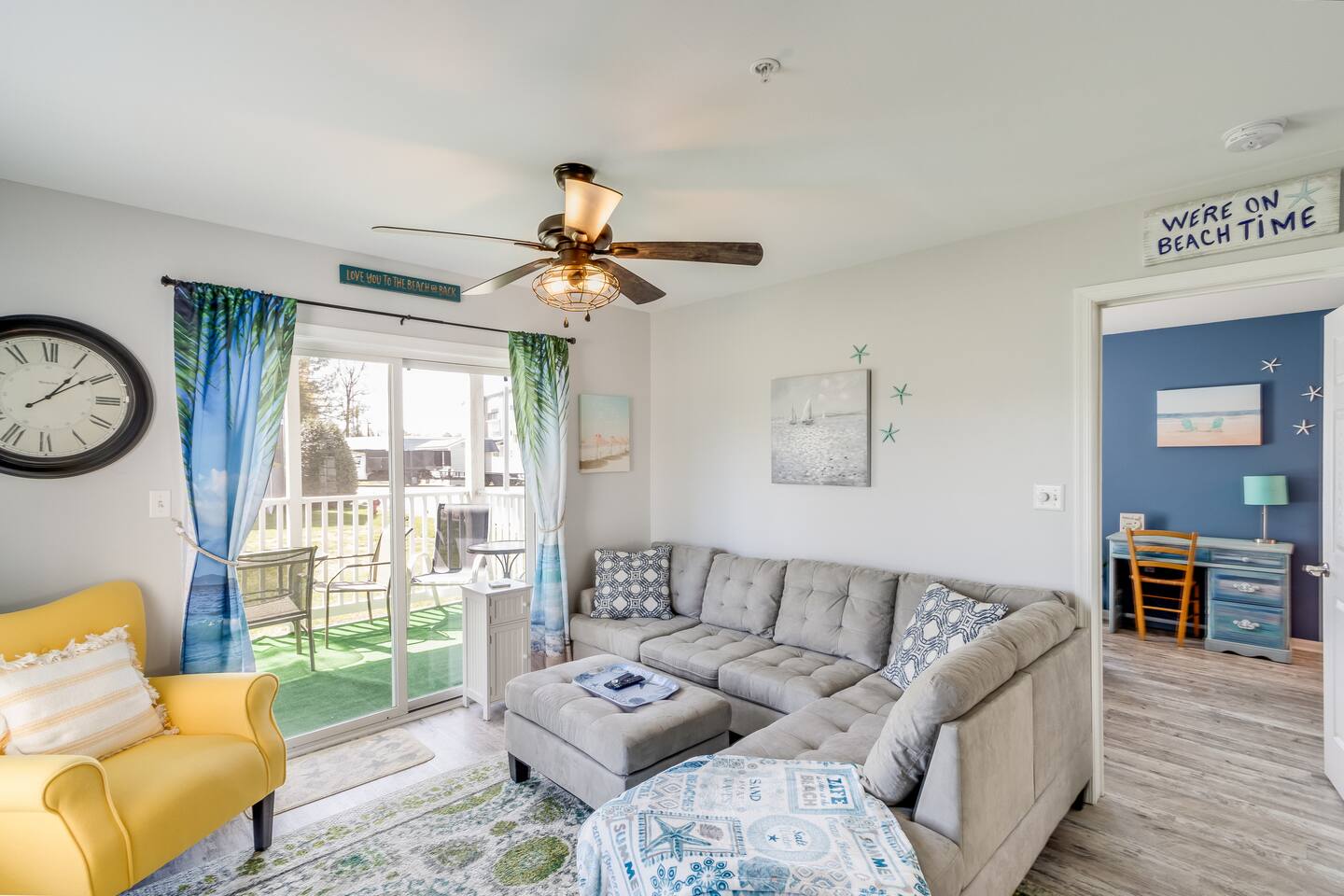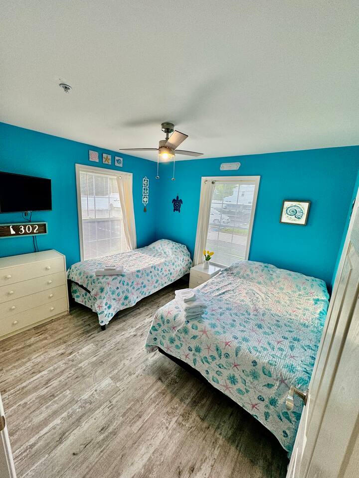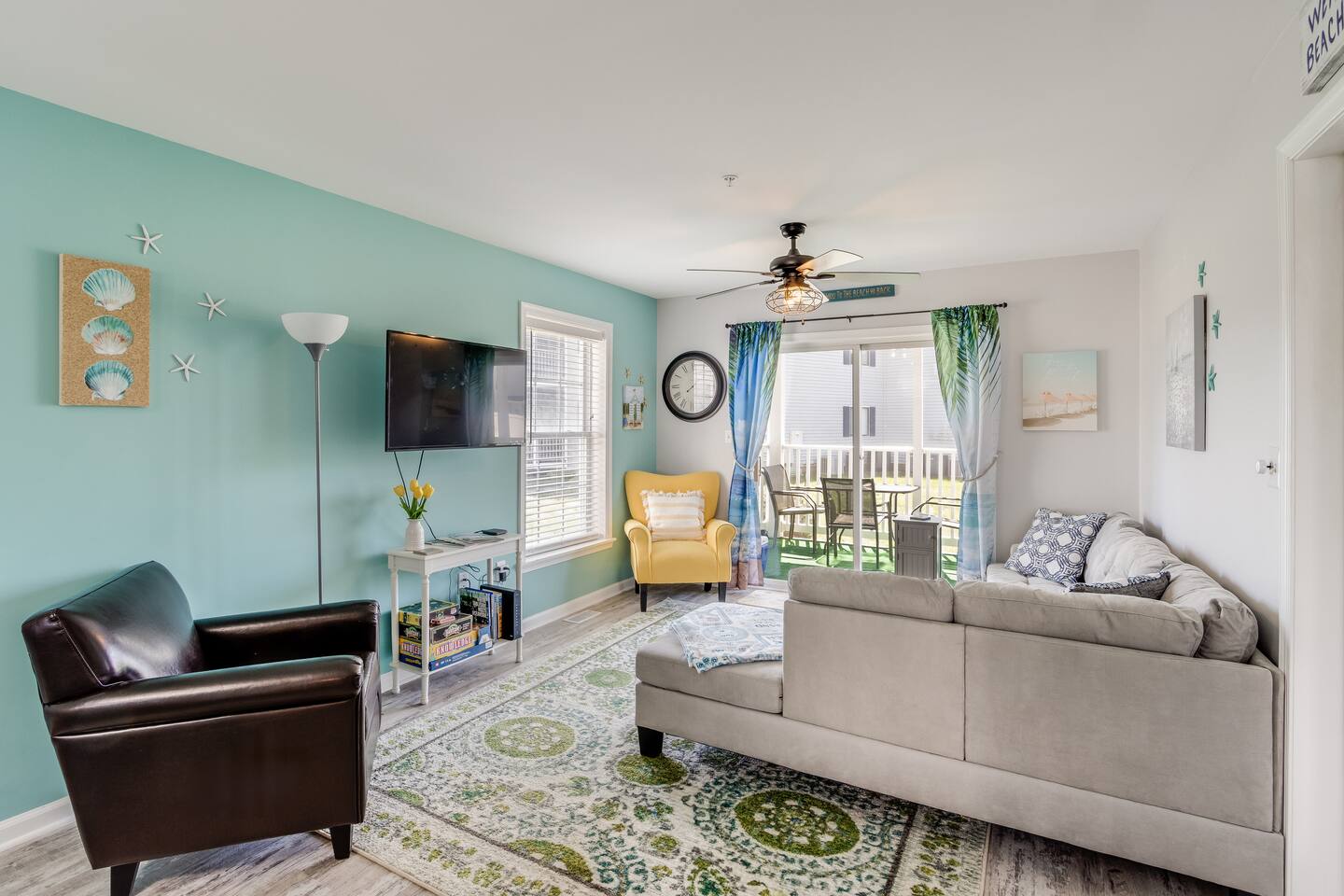 *This property can be rented monthly in the off season - please submit an inquiry. - Please note - Monthly discounts are not available during the summer season (Memorial Day through Labor Day). **DEL 302 Management standard: -Linens and towels are included -Starter amounts of toilet paper for each bathroom, paper towels, trash bags, dishwasher pods, laundry detergent/pods, hand soap at each sink, and dish soap at the kitchen sink. Also, supply shampoo, conditioner, and body wash in the bathrooms. -Guests are responsible for providing anything they need beyond the starter amounts provided. **Pool is open May 1st - Sept 30th** The condo is located on the 1st floor of the Building. Along with the 2 bedrooms, there is plenty of living room seating and a peaceful outdoor screened in porch for you to enjoy a some relaxation or have dinner with the family out there! There are also corn hole boards for your use in the grass common area. Please do not leave them outside. -Master bedroom has a Queen bed. -The 2nd bedroom has a Full bed, along with a Twin bed and a Twin trundle bed under that bed that pulls out. (Bunk bed has been removed). There is also an air mattress in the closet if needed. *Don't hesitate to bring all your vacation needs as there is plenty of storage and closet space in both bedrooms. Fully equipped kitchen for your cooking needs along with a Keurig coffee machine (with complimentary Kcups). Feel free to use the full size washer and dryer to have a clean suitcase full of clothes going home. *Fast WIFI is available for all your streaming and social media needs. *All TV's are streaming only for you to log into your account, there is no cable. *Dogs welcome w/ $200 pet fee (dogs only, no cats)