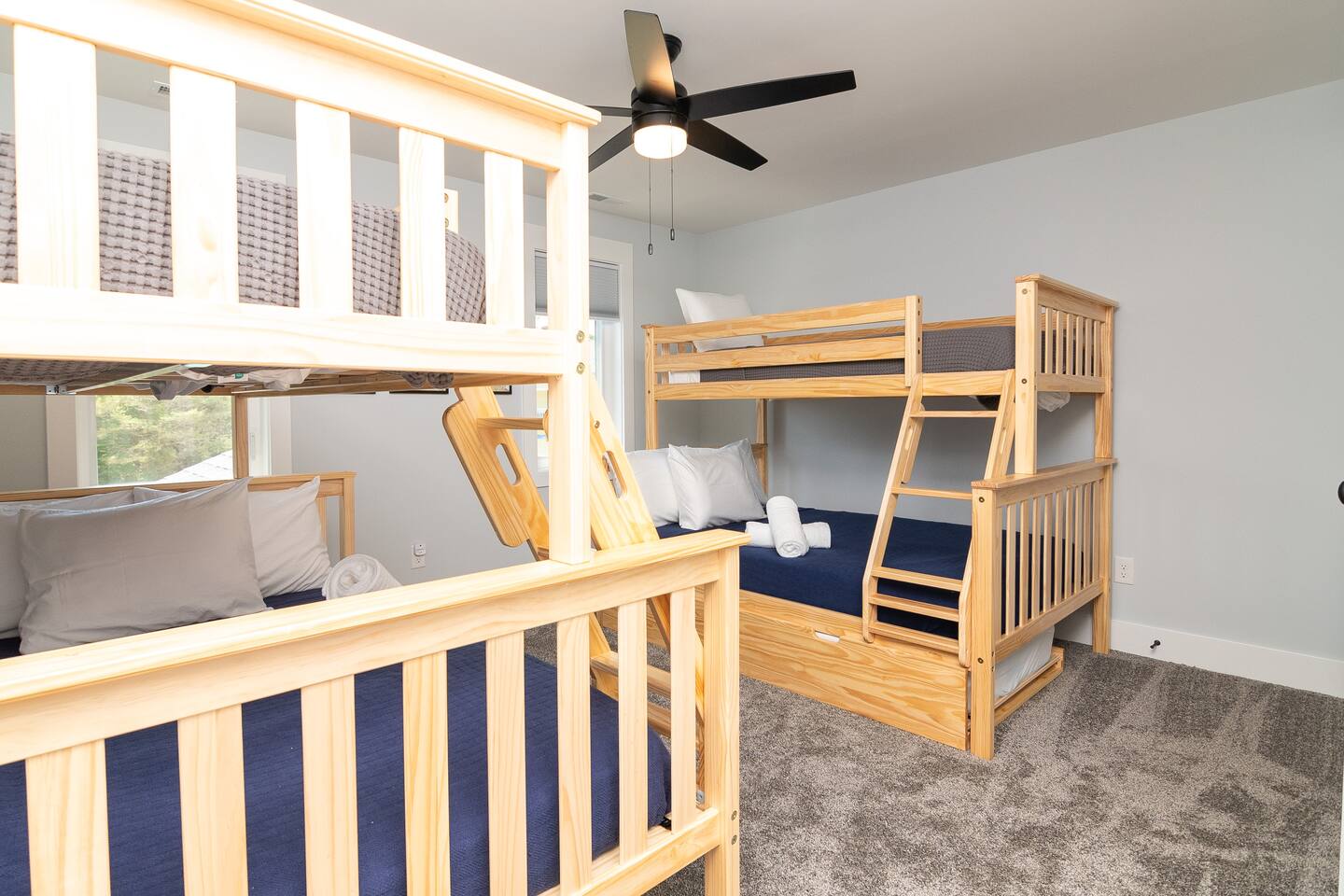 - All guests must be at least 25 years old, except for children with parents. - Please note - Monthly discounts are not available during the summer season (Memorial Day through Labor Day). - The Town of Ocean View limits the property to 10 guests total, except for those under 6 years of age. *DEL 302 Management standard: -Linens and towels are included -Starter amounts of toilet paper for each bathroom, paper towels, trash bags, dishwasher pods, laundry detergent/pods, hand soap at each sink, and dish soap at the kitchen sink. Also, supply shampoo, conditioner, and body wash in the bathrooms. -Guests are responsible for providing anything they need beyond the starter amounts provided. Luxurious New Build Custom Home in Ocean View, DE: Ideal for Family Vacations Welcome to your dream vacation retreat in the heart of Ocean View, Delaware! This stunning new build custom home is designed with meticulous attention to detail and modern elegance, providing an unparalleled living experience. With four spacious bedrooms, three and a half baths, and an array of upscale amenities, this property offers everything you need for a perfect getaway. Interior Features: As you step through the grand entrance, you are greeted by an open-concept layout that seamlessly blends the living, dining, and kitchen areas. The main living space is bathed in natural light, featuring large windows and high ceilings that create a bright and airy ambiance. The comfortable seating arrangement invite you to relax and unwind after a day of exploring the beach and beautiful surroundings. - Bedroom 1: King bed - Bedroom 2: King bed - Bedroom 3: Queen with Twin pull out trundle - Bedroom 4: 1 Twin over Double bunk; 1 Twin over Double bunk with Twin pull out trundle Chef's Kitchen: The heart of this home is the chef's kitchen, designed to delight culinary enthusiasts. Equipped with top-of-the-line stainless steel appliances, custom cabinetry, and a large center island, this kitchen is both functional and stylish. The quartz countertops, designer backsplash, and high-end fixtures add a touch of sophistication, making meal preparation a pleasure. Bedrooms and Baths: The home boasts four generously sized bedrooms, each thoughtfully designed to provide comfort and tranquility. The primary suite is a true sanctuary, featuring a spacious layout, walk-in closet, and a luxurious en-suite bath with dual vanities, and a separate shower. The additional bedrooms are equally inviting, with ample closet space and elegant finishes. The three and a half baths are tastefully appointed with modern fixtures and premium materials, ensuring a spa-like experience. Additional Living Spaces: This custom home offers not one, but two living spaces, providing ample room for relaxation and entertainment. The second living area is perfect for family gatherings, game nights, or watching movies, ensuring everyone has a place to enjoy. Screened-In Porch and Outdoor Living: Step outside to the screened-in porch, where you can savor the coastal breeze and the tranquil surroundings. This versatile space is perfect for dining al fresco, enjoying morning coffee, or simply unwinding with a good book. The beautifully landscaped yard offers plenty of space for outdoor activities and gatherings. Second-Floor Balcony: The second floor features a charming sitting area on the balcony, providing a cozy spot to relax and take in the views. This additional outdoor space is perfect for sipping cocktails in the evening, stargazing, or enjoying quiet moments of solitude. Ideal Location: Situated just steps away from the state bike and walking trail, this home is a haven for outdoor enthusiasts. Explore the scenic trails, take leisurely strolls, or go for a bike ride to soak in the natural beauty of Ocean View. Additionally, the property is conveniently located near a variety of restaurants and bars, offering an array of dining and entertainment options within walking distance. Whether you're in the mood for a casual meal or a night out on the town, everything you need is right at your doorstep. Perfect for Two Families: Designed with versatility in mind, this home is perfect for accommodating two families. The spacious layout, multiple living areas, and ample bedrooms ensure everyone has their own space while still enjoying a sense of togetherness. Whether you're planning a family reunion, a joint vacation with friends, or a multi-generational trip, this home provides the perfect setting for creating lasting memories. PARKING: - Off street parking preferred, please limit your vehicles to 4. - If you must park on the street please park head-in (or tail-in) to the curb in front of the electrical box. Beach Essentials: - Beach Towels - 4 Beach Chairs - 1 Beach Umbrella Conclusion: This new build custom home in Ocean View, DE, is a true gem, offering a luxurious and comfortable retreat just moments away from the best the area has to offer. With its thoughtful design, high-end finishes, and prime location, this property is the ultimate vacation destination for those seeking relaxation, adventure, and quality time with loved ones. Don't miss the opportunity to make this exquisite home your own and experience the best of coastal living.