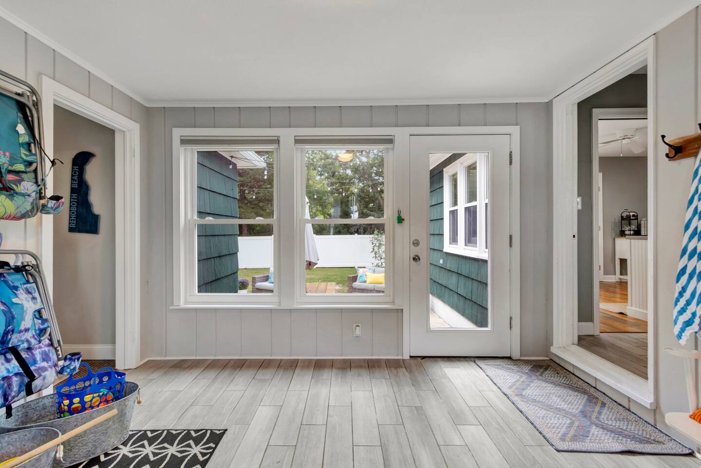 - All guests must be at least 25 years old, except for children with parents. - Please note - Monthly discounts are not available during the summer season (Memorial Day through Labor Day). *DEL 302 Management standard: -Linens and towels are included -Starter amounts of toilet paper for each bathroom, paper towels, trash bags, dishwasher pods, laundry detergent/pods, hand soap at each sink, and dish soap at the kitchen sink. Also, supply shampoo, conditioner, and body wash in the bathrooms. -Guests are responsible for providing anything they need beyond the starter amounts provided. Bedroom 1 - Queen Bed Bedroom 2 - Queen Bed Bedroom 3 - Queen Bed Bedroom 4 - 2 Twin over Twin Bunk Beds BEACH ESSENTIALS: - 4 Beach Chairs - 10 Beach Towels - 1 Beach Cooler INDOOR LIVING: Spacious living room, fully equipped kitchen, TVs w/ streaming services, dining table, board games. OUTDOOR LIVING: Fully fenced in yard, outdoor patio, propane grill, outdoor furniture. KITCHEN: Fully equipped, microwave, Keurig dual coffee maker, hot water kettle, toaster, dishware/flatware, cooking pots/pans. GENERAL: WiFi, washer/dryer, linens, bath towels, hairdryer, central AC/heat, keyless entry, Keurig dual coffee maker, pots/pans. PARKING: - Driveway - can fit up to 4 cars PROXIMITY: 0.1 miles to Royal Farms 0.2 miles to Henlopen Pizza Kitchen 0.5 miles to Everyone Fitness 0.5 miles to Walmart 0.6 miles to Atlantic Liquors 0.7 miles to Agave Mexican Restaurant 0.7 miles to Tanger Outlets 0.7 miles to Midway Speedway & White Water Mountain 0.9 miles to Safeway 0.9 miles to Movies at Midway 1 mile to Beebe Walk-in Rehoboth 1.2 miles to Michy's Relaxed Dining 1.8 miles to Lefty's Alley & Eats bowling/restaurant 2.3 miles to Jungle Jim's waterpark 2.5 miles to Junction & Breakwater Trail 3.5 miles to Beebe Healthcare/Hospital in Lewes 3.8 miles to Rehoboth Beach & Boardwalk 3.8 miles to Shell We Bounce Trampoline Park 4.7 miles to Lewes Beach 5.2 miles to Gordons Pond 5.6 miles to Cape Henlopen State Park