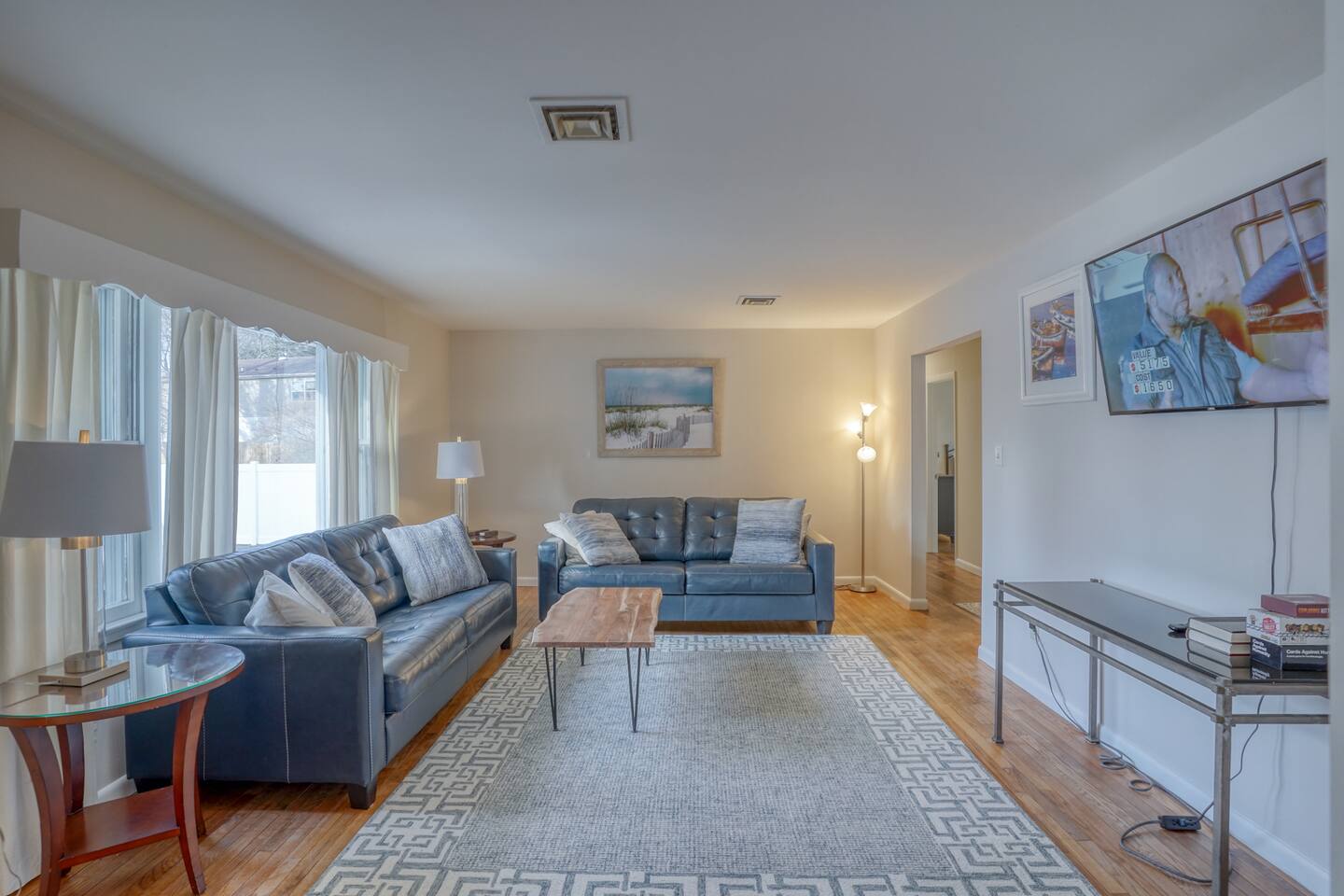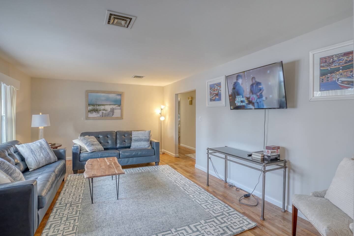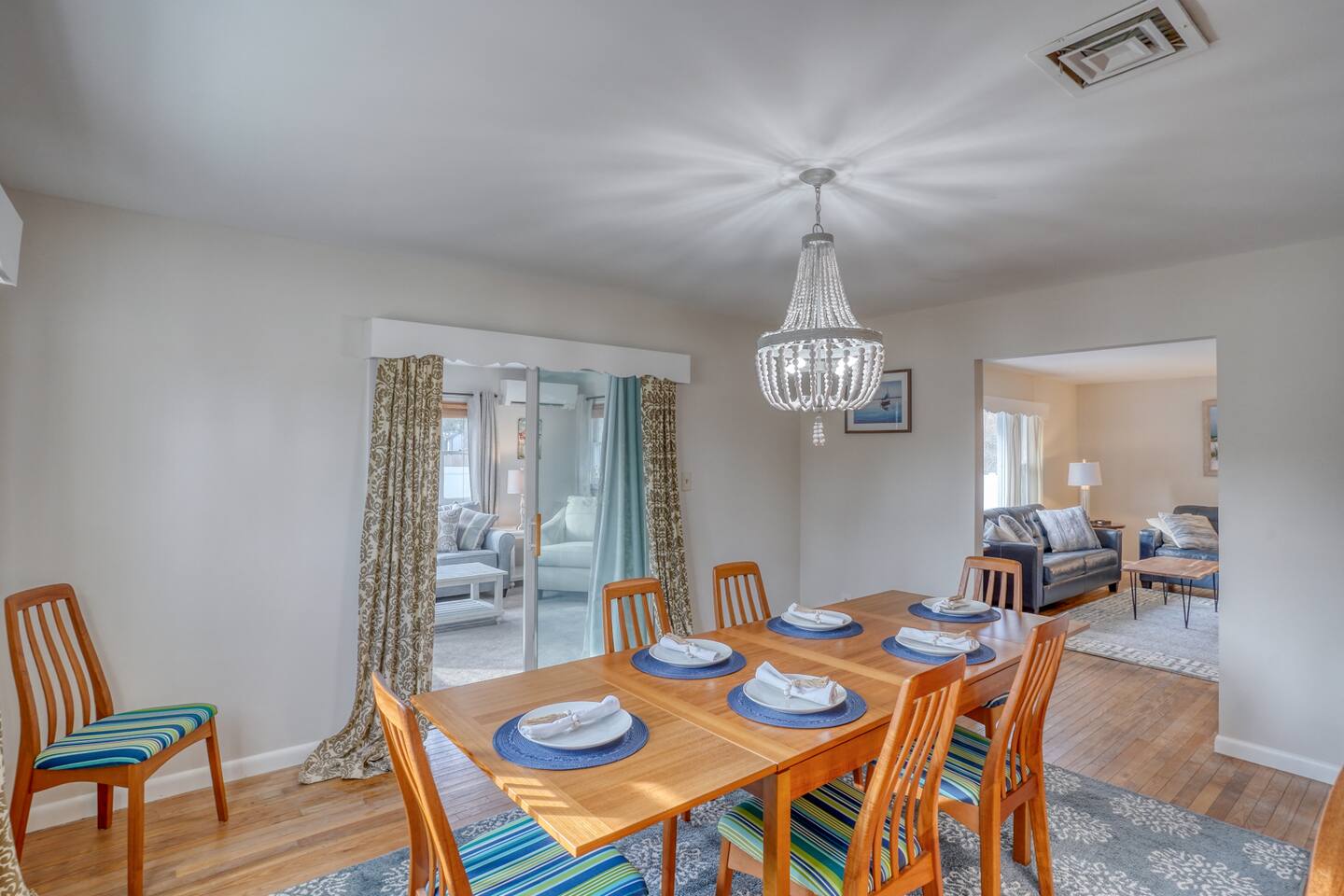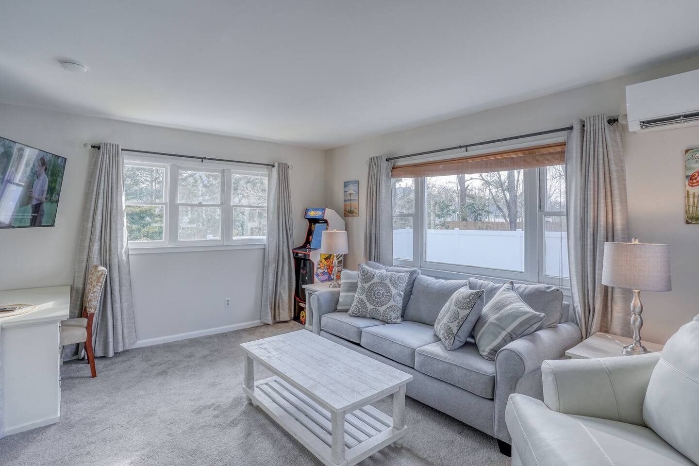*This property can be rented monthly in the off season (Sept-April) - please submit an inquiry. - Please note - Monthly discounts are not available during the summer season (Memorial Day through Labor Day). *All guests must be 25 years old, except for children with parents. **DEL 302 Management standard: -Linens and towels are included -Starter amounts of toilet paper for each bathroom, paper towels, trash bags, dishwasher pods, laundry detergent/pods, hand soap at each sink, and dish soap at the kitchen sink. Also, supply shampoo, conditioner, and body wash in the bathrooms. -Guests are responsible for providing anything they need beyond the starter amounts provided. Bedroom 1 : King Bedroom 2 : 2 Fulls Bedroom 3 : Queen Additional Sleeping - Living Room/Sunroom - Pull out couch Dogs welcome w/ $200 pet fee (2 dogs max, no cats) *Please note - grass cutting occurs every Tuesday(weather permitting)