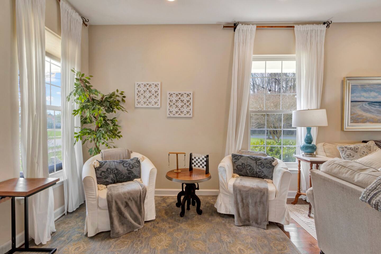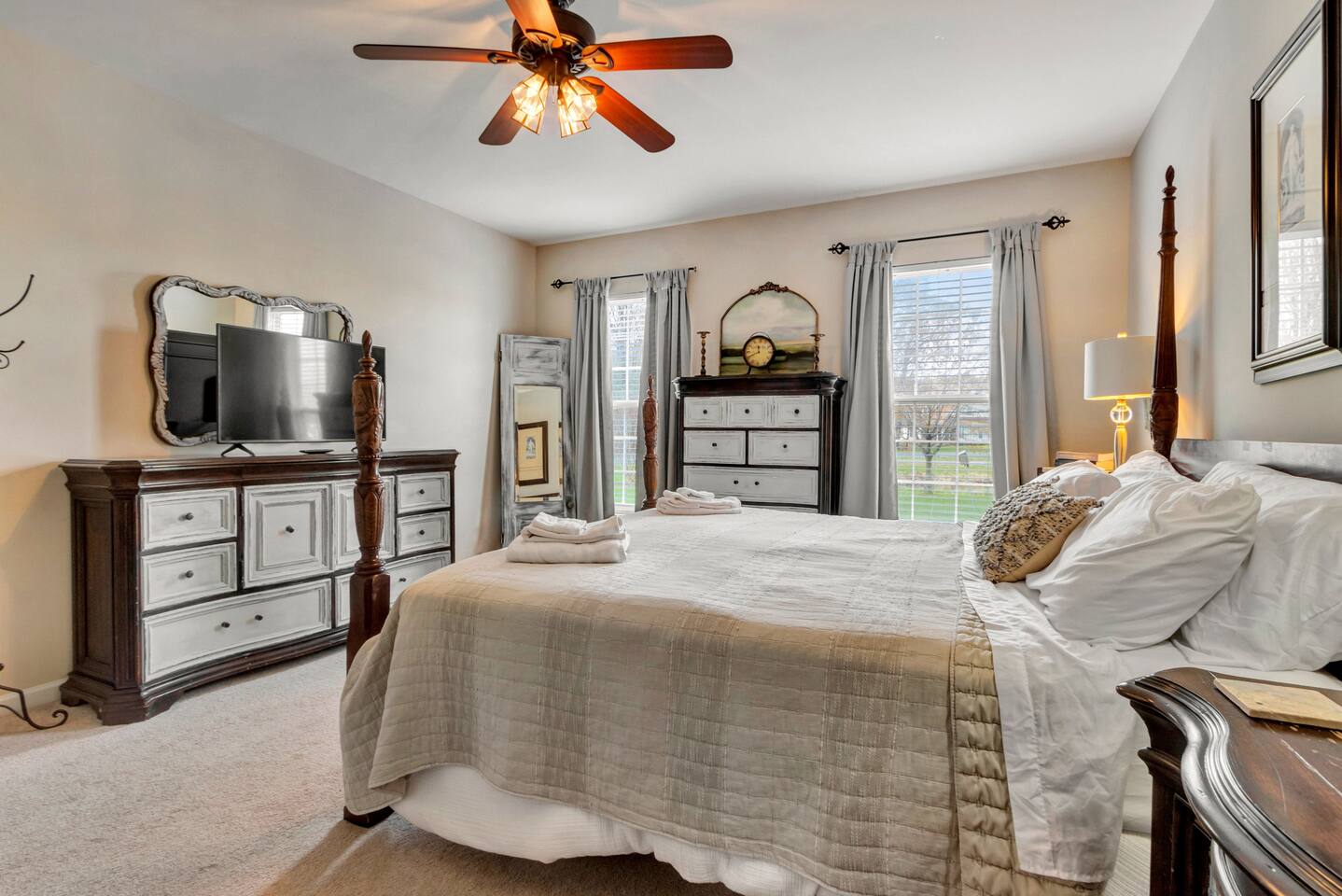 Relax at this tranquil Rehoboth Beach retreat just minutes from the beach and boardwalk. This 3BR, 2.5BA home sleeps 8 and features a king suite with soaking tub, fully equipped kitchen with double oven, cozy living area, and TVs in every bedroom. Enjoy pond views from the patio with Adirondack chairs, fire pit, and grill. Everything you need for an easy coastal getaway with the community pool steps away!