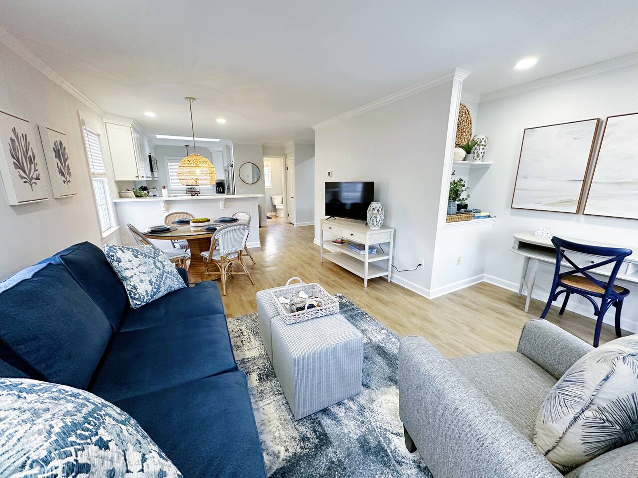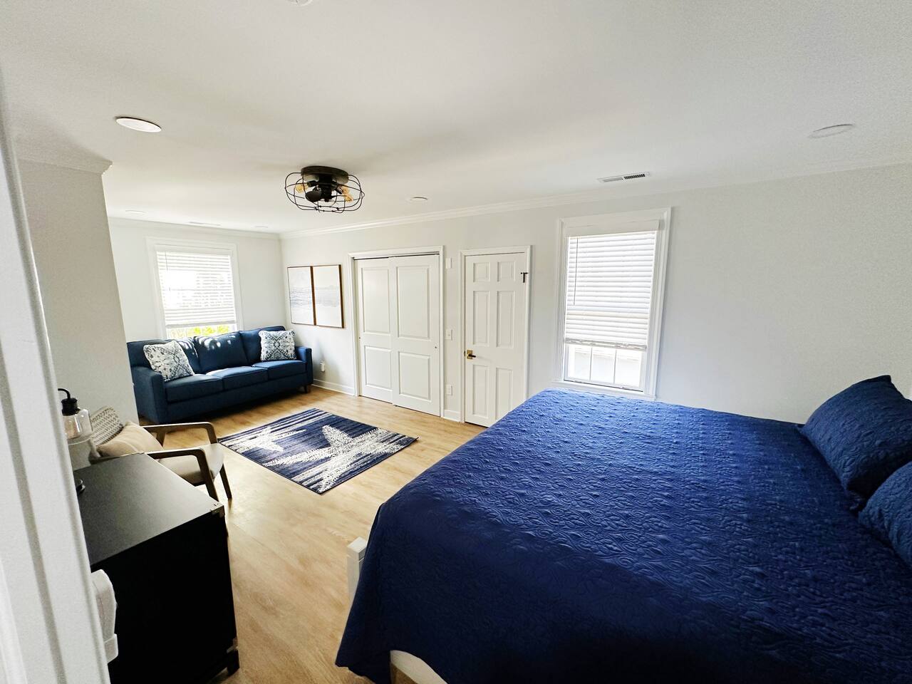 This newly renovated 2nd floor living space boasts 2 bedrooms and 2 full bathrooms. It is located in downtown Lewes. There is a new kitchen with family seating, a cozy family room, & the amenities you will need. This space boasts a master suite with a king-sized bed and an ensuite, along with bunk room and two sofa beds perfect for a family. Included are two parking spaces located in the gravel lot in the back of the building.
