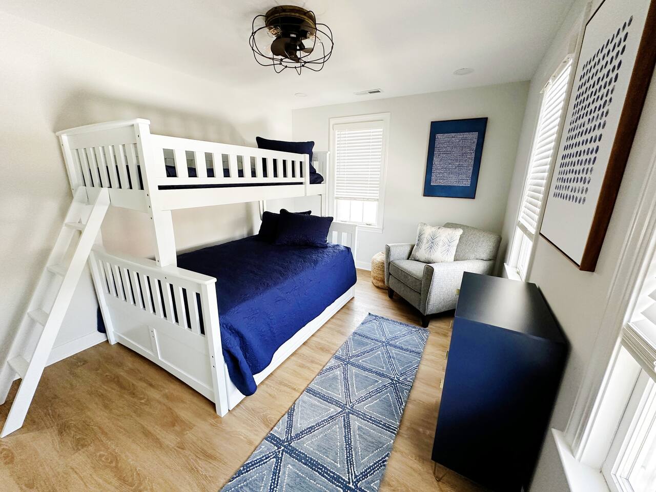 *This property can be rented monthly in the off season (Sept-April) - please submit an inquiry. - Please note - Monthly discounts are not available during the summer season (Memorial Day through Labor Day). **DEL 302 Management standard: -Linens and towels are included -Starter amounts of toilet paper for each bathroom, paper towels, trash bags, dishwasher pods, laundry detergent/pods, hand soap at each sink, and dish soap at the kitchen sink. Also, supply shampoo, conditioner, and body wash in the bathrooms. -Guests are responsible for providing anything they need beyond the starter amounts provided. Bedroom 1 - King bed Bedroom 2 - Twin over Full bunk, along with a Twin Trundle bed. Additional Sleeping: Living Room - Pull out Sofa Bed Master Bedroom - Pull out Sofa Bed - Bedding, linens, & towels are provided. - 2 beach chairs provided - Free WIFI - Washer/Dryer in Bedroom 1