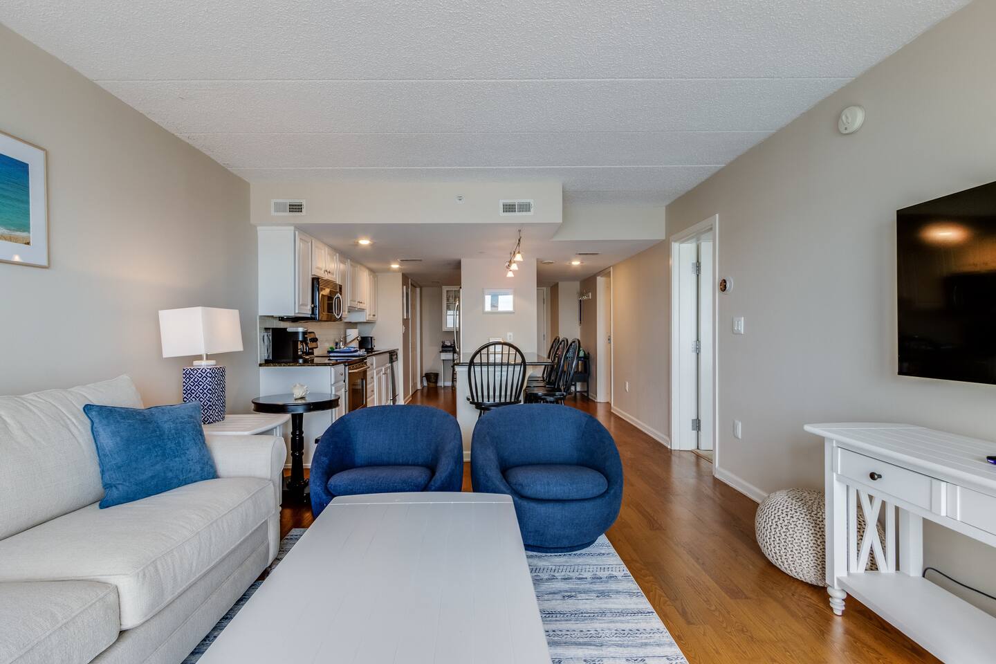 - All guests must be at least 25 years old, except for children with parents. *Please Note - 4 Occupants Max - Children 5 years old and under are not considered occupants for occupancy limits, so the place can sleep a max of 4 adults and 1 child on the roll-out Twin cot. - Please note - Monthly discounts are not available during the summer season (Memorial Day through Labor Day). *DEL 302 Management standard: -Linens and towels are included -Starter amounts of toilet paper, paper towels, trash bags, dishwasher pods, laundry detergent/pods, hand soap at each sink, and dish soap at the kitchen sink. Also, supply shampoo, conditioner, and body wash in the bathrooms. -Guests are responsible for providing anything they need beyond the starter amounts provided. Bedroom 1: King Bed w/ En Suite Bathroom Additional Sleeping: - Pull Out Couch - Queen - Living Room - Roll Away Twin Bed BEACH ESSENTIALS: - 4 Beach Chairs - 1 Beach Umbrella - 1 Small Soft Beach Cooler - 4 Beach Towels - Beach Sand Toys for Kids COMMUNITY AMENITIES: - Community Rooftop Pool in Building Next Door *2025 Opening Date - May 31st *Pool Closing Date - Sept 7th - Community Shared Gas Grill in Pool Area - Community Bike Rack Outside - (Bikes not provided) -Please do not bring bikes into the building. INDOOR LIVING: Living room with pull out sofa bed, fully equipped kitchen with kitchen island, TVs w/ streaming services, cards and puzzles. OUTDOOR LIVING: Two outdoor balconies with seating and marina/bay views. KITCHEN: Fully equipped, microwave, Keurig coffee pot, drip coffee maker with filters, k-pods, hot water kettle, toaster, blender, dishware/flatware, cooking pots/pans. (Please note- no ground coffee provided) GENERAL: WiFi, washer/dryer, linens, bath towels, hairdryer, central AC/Heat, Keurig and drip coffee maker, pots/pans, iron & ironing board. PARKING: - 1 Uncovered Assigned Space - 1 Car - 1 Covered Assigned Space Under Building - 1 Car (No trucks, tall vehicles, or vehicles with storage rack on top) PROXIMITY: 0.1 miles to The Dewey Post restaurant 0.2 miles to the Beach Access on Collins Ave 0.2 miles to Nalu Dewey Beach restaurant 0.3 miles to The Lighthouse Restaurant 0.3 miles to Rusty Rudder Restaurant 0.5 miles to Woody's Dewey Beach Restaurant 0.6 miles to The Starboard Restaurant 2.4 miles to Rehoboth Beach & Boardwalk 6.4 miles to Delaware Seashore State Park & Big Chill Beach Club restaurant 13 miles to Bethany Beach & Boardwalk