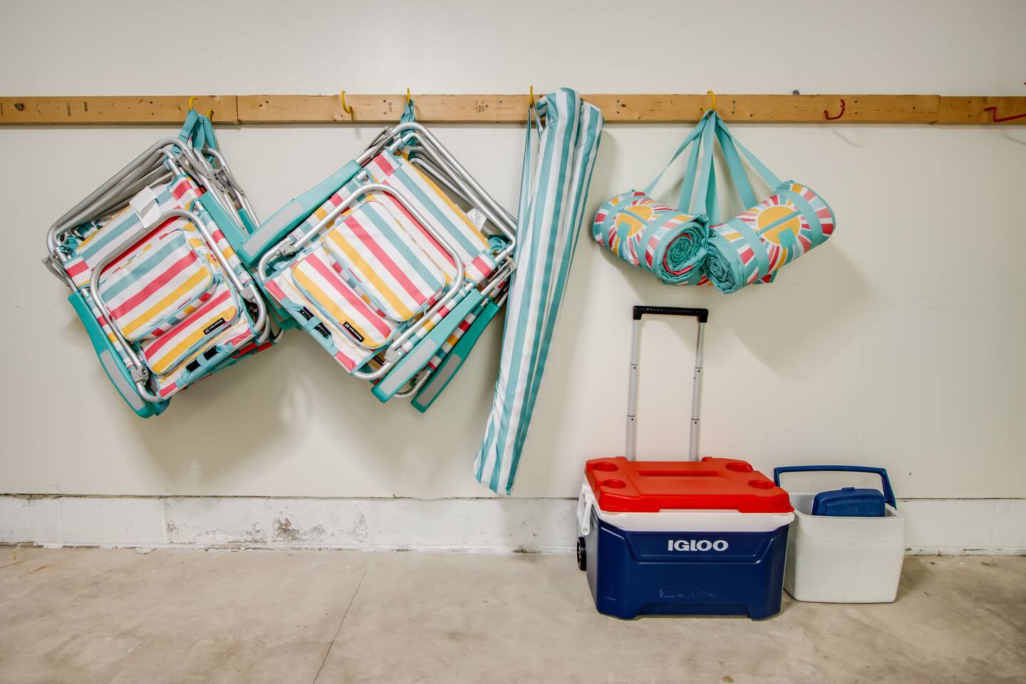- Beach essentials Beach towels, umbrella, beach blanket, snorkeling gear