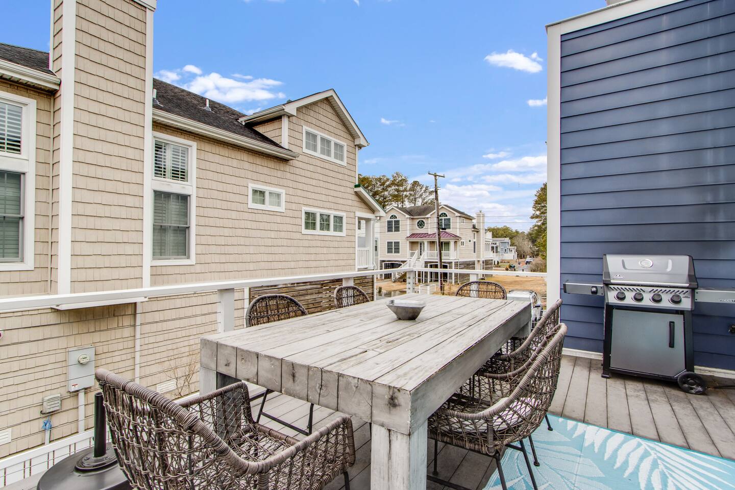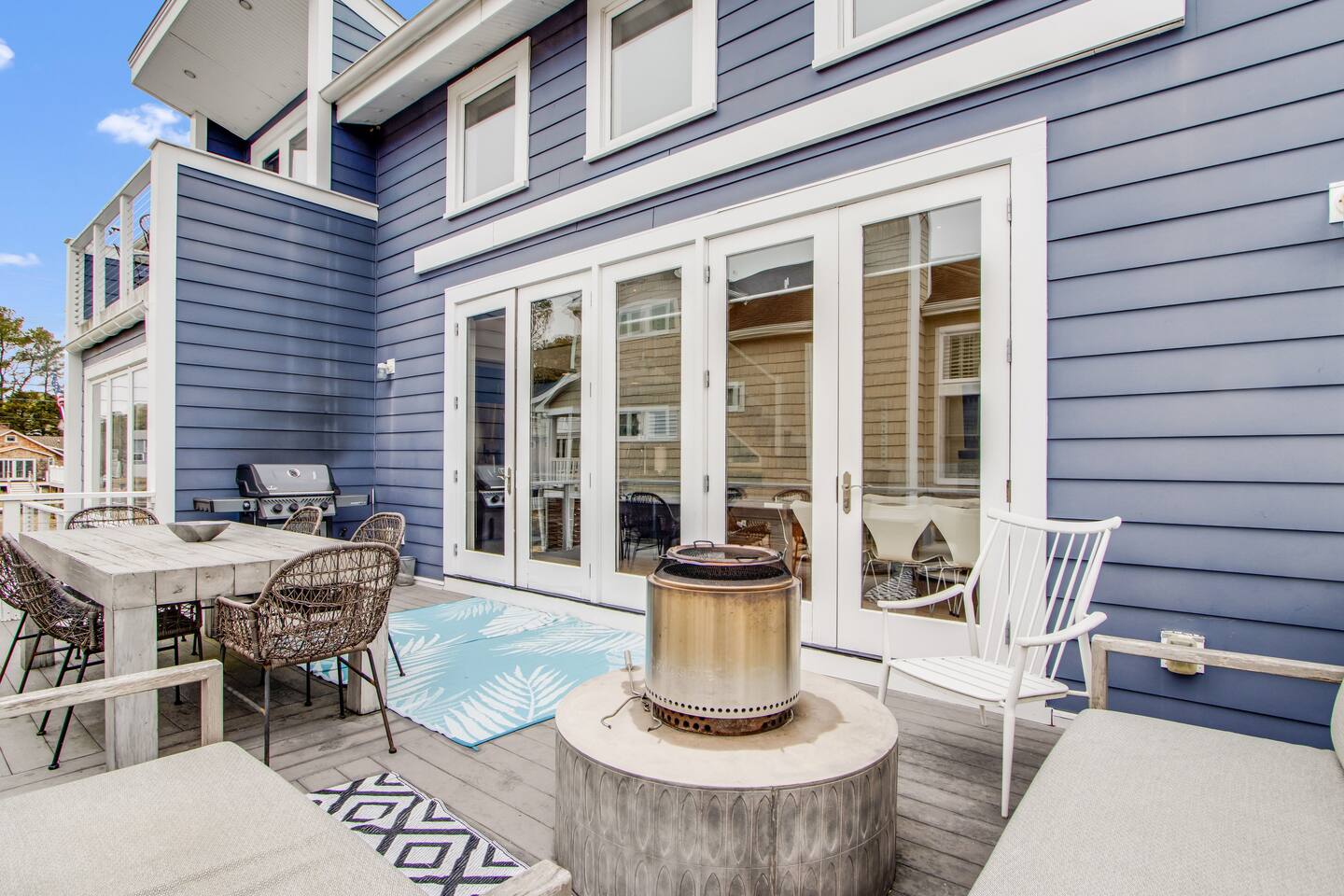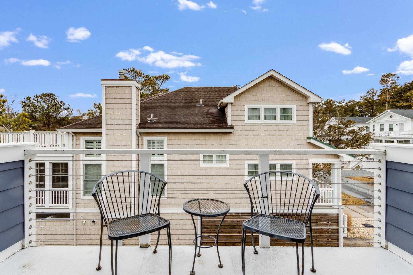 *This property can be rented monthly in the off season (Sept-April) - please submit an inquiry. - Please note - Monthly discounts are not available during the summer season (Memorial Day through Labor Day). *All guests must be 25 years old, except for children with parents. **DEL 302 Management standard: -Linens and towels are included -Starter amounts of toilet paper for each bathroom, paper towels, trash bags, dishwasher pods, laundry detergent/pods, hand soap at each sink, and dish soap at the kitchen sink. Also, supply shampoo, conditioner, and body wash in the bathrooms. -Guests are responsible for providing anything they need beyond the starter amounts provided. Bedroom 1: Queen Bed w/ En Suite Bathroom & Separate Entrance if needed - 2nd Floor Bedroom 2: Queen Bed - 2nd Floor Bedroom 3: Twin Bunk Bed - 2nd Floor - in between BR 1 & BR 2 Bedroom 4: King Bed with Twin Bed w/ En Suite Bathroom - 3rd Floor Additional Sleeping: Full Sleeper Sofa - 3rd Floor Loft Area - 1 Bethany Parking Pass provided for guest use. (Lost/stolen pass - $100 replacement fee) Game Room - Ground/1st Floor: - Ping Pong Table, Croquet, Bocce Ball, Corn Hole, Putting Game. BEACH GEAR: - 10 Beach Towels - 10 Beach Chairs - 2 Beach Umbrellas - 1 Beach Cooler - 1 Beach Cart - 3 Boogie Boards - Corn Hole Boards - Spike Ball - Kites OUTDOOR LIVING: Hot tub, fenced in yard with all new turf, deck with small fire pit, outdoor shower, putting game, bocce ball, croquet, walk to restaurants/ice cream shops/yoga studio/mini-golf/kayaking. INDOOR LIVING: Smart TVs w/ streaming services, game room with ping pong table, mini mrs pacman game, puzzles/board games, dining table, ceiling fans. KITCHEN: Fully equipped, microwave, Keurig dual coffee maker, tea kettle, toaster, blender, dishware/flatware, cooking basics, 2 crab pots, kitchen island. GENERAL: WiFi, EV charger, washer/dryer, linens, bath & beach towels, central air conditioning/heat. FAQ: Linens and towels provided, Ring doorbell camera at front entrance, dogs welcome w/ $200 pet fee (2 dogs max, no cats) PARKING: Driveway (4 vehicles, with 1 small car being able to fit underneath house) - EV Charger - Level 2 PROXIMITY: 0.5 miles to Wawa 0.5 miles to DiFebo's Restaurant 0.5 miles to Grotto's Pizza 0.5 miles to Off the Hook Restaurant 0.6 miles to Bethany Diner 0.9 miles to Bethany Beach and Boardwalk 1.1 miles to Shipwrecked Mini Golf and Ice Cream 1.2 miles to Assawoman Canal Trailhead/Kayak Launch 1.3 miles to Pure Family Fitness 1.3 miles to Bethany Bike Shop 1.4 miles to Northeast Seafood Kitchen 1.4 miles to Honey’s at Station 26 1.8 miles to John West Park and Historic Village 2.5 miles to G&E Hocker's Supermarket 2.5 miles to Back Bay Tours - marina in Ocean view that provides sunset cruises, boat tours, and water taxis across the bay to Paradise Grill 3.2 miles to Fenwick Island State Park 5.4 miles to Delaware Seashore State Park with Big Chill Beach Club restaurant 11 miles to Dewey Beach 15 miles to Ocean City Boardwalk Golfing: The Salt Pond Golf Club - 2.7 miles Bear Trap Dunes - 2.8 miles Bethany Bay Golf Club - 4.8 miles