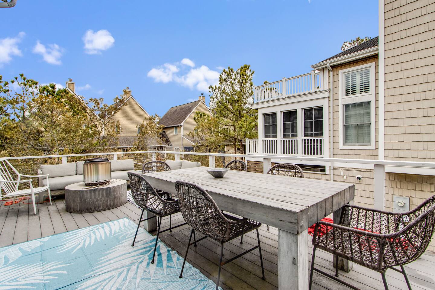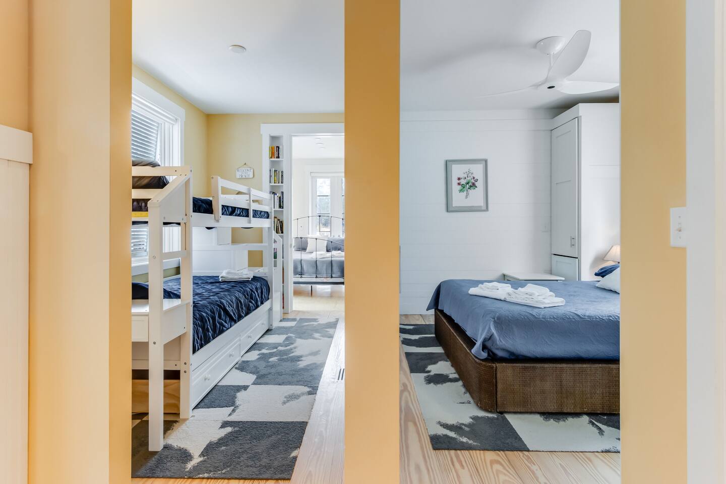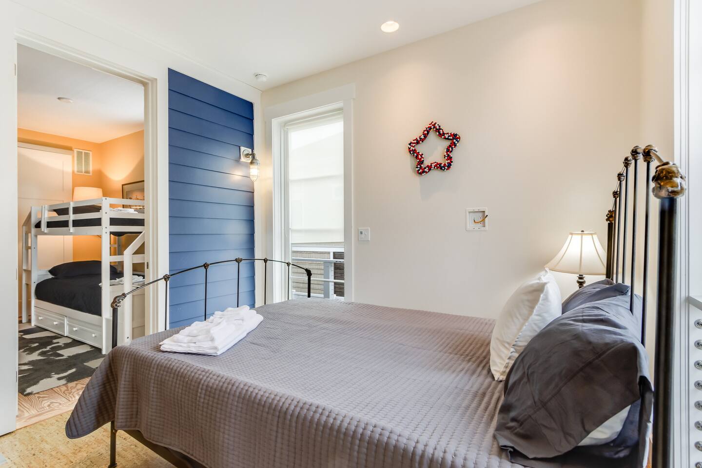 *This property can be rented monthly in the off season (Sept-April) - please submit an inquiry. - Please note - Monthly discounts are not available during the summer season (Memorial Day through Labor Day). *All guests must be 25 years old, except for children with parents. **DEL 302 Management standard: -Linens and towels are included -Starter amounts of toilet paper for each bathroom, paper towels, trash bags, dishwasher pods, laundry detergent/pods, hand soap at each sink, and dish soap at the kitchen sink. Also, supply shampoo, conditioner, and body wash in the bathrooms. -Guests are responsible for providing anything they need beyond the starter amounts provided. Bedroom 1: Queen Bed w/ En Suite Bathroom & Separate Entrance if needed - 2nd Floor Bedroom 2: Queen Bed - 2nd Floor Bedroom 3: Twin Bunk Bed - 2nd Floor - in between BR 1 & BR 2 Bedroom 4: King Bed with Twin Bed w/ En Suite Bathroom - 3rd Floor Additional Sleeping: Full Sleeper Sofa - 3rd Floor Loft Area - 1 Bethany Parking Pass provided for guest use. (Lost/stolen pass - $100 replacement fee) Game Room - Ground/1st Floor: - Ping Pong Table, Croquet, Bocce Ball, Corn Hole, Putting Game. BEACH GEAR: - 10 Beach Towels - 10 Beach Chairs - 2 Beach Umbrellas - 1 Beach Cooler - 1 Beach Cart - 3 Boogie Boards - Corn Hole Boards - Spike Ball - Kites OUTDOOR LIVING: Hot tub, fenced in yard with all new turf, deck with small fire pit, outdoor shower, putting game, bocce ball, croquet, walk to restaurants/ice cream shops/yoga studio/mini-golf/kayaking. INDOOR LIVING: Smart TVs w/ streaming services, game room with ping pong table, mini mrs pacman game, puzzles/board games, dining table, ceiling fans. KITCHEN: Fully equipped, microwave, Keurig dual coffee maker, tea kettle, toaster, blender, dishware/flatware, cooking basics, 2 crab pots, kitchen island. GENERAL: WiFi, EV charger, washer/dryer, linens, bath & beach towels, central air conditioning/heat. FAQ: Linens and towels provided, Ring doorbell camera at front entrance, dogs welcome w/ $200 pet fee (2 dogs max, no cats) PARKING: Driveway (4 vehicles, with 1 small car being able to fit underneath house) - EV Charger - Level 2 PROXIMITY: 0.5 miles to Wawa 0.5 miles to DiFebo's Restaurant 0.5 miles to Grotto's Pizza 0.5 miles to Off the Hook Restaurant 0.6 miles to Bethany Diner 0.9 miles to Bethany Beach and Boardwalk 1.1 miles to Shipwrecked Mini Golf and Ice Cream 1.2 miles to Assawoman Canal Trailhead/Kayak Launch 1.3 miles to Pure Family Fitness 1.3 miles to Bethany Bike Shop 1.4 miles to Northeast Seafood Kitchen 1.4 miles to Honey’s at Station 26 1.8 miles to John West Park and Historic Village 2.5 miles to G&E Hocker's Supermarket 2.5 miles to Back Bay Tours - marina in Ocean view that provides sunset cruises, boat tours, and water taxis across the bay to Paradise Grill 3.2 miles to Fenwick Island State Park 5.4 miles to Delaware Seashore State Park with Big Chill Beach Club restaurant 11 miles to Dewey Beach 15 miles to Ocean City Boardwalk Golfing: The Salt Pond Golf Club - 2.7 miles Bear Trap Dunes - 2.8 miles Bethany Bay Golf Club - 4.8 miles