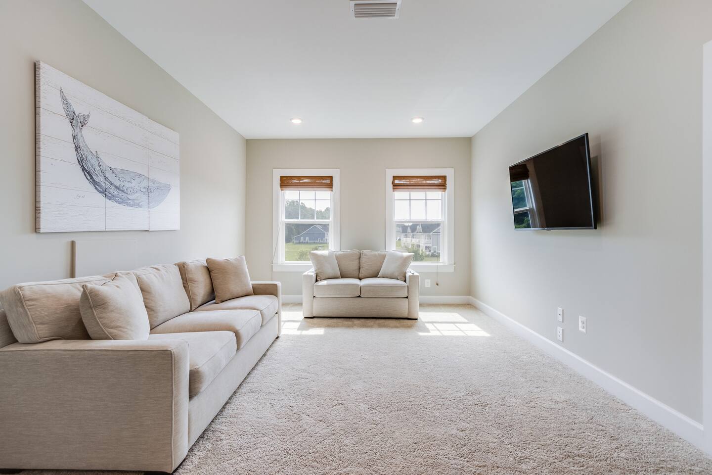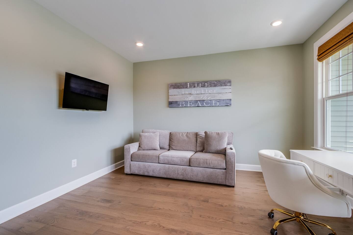 *All guests must be 25+, except for children with parents. *This property can be rented monthly in the off season (Sept-April) - please submit an inquiry for your dates to see the monthly discount. - Please note - Monthly discounts are not available during the summer season (Memorial Day through Labor Day). **DEL 302 Management standard: -Linens and towels are included -Starter amounts of toilet paper for each bathroom, paper towels, trash bags, dishwasher pods, laundry detergent/pods, hand soap at each sink, and dish soap at the kitchen sink. Also, supply shampoo, conditioner, and body wash in the bathrooms. -Guests are responsible for providing anything they need beyond the starter amounts provided. Bedroom 1: King Bed - 1st Floor - Master w/ en suite bathroom Bedroom 2: Queen Bed - 1st Floor Bedroom 3: Queen Bed - 2nd Floor Bedroom 4/Office: Queen Sofa Bed - 1st Floor Additional Sleeping: Loft Area/Living Room 2 - Queen Sofa Bed - 2nd Floor Community Pool (open seasonally) *Fall Pool Hours of Operation (Beginning Sept 2nd): Monday - Thursday 10am-6pm -Open daily from Sept 2-12th, then the outdoor pool is no longer open on weekdays, except Fridays) Fridays & Saturdays - 10am-8pm Sunday (Sept 7 & 14) - 10am-8pm Sunday (Sept 21 & 28) - 10am-7pm OUTDOOR LIVING: Outdoor private fenced in back yard with patio, outdoor shower(open seasonally), outdoor dining table. INDOOR LIVING: Large Living room, Huge fully equipped Kitchen, Smart TVs w/ streaming services, games, Dining table, ceiling fans. KITCHEN: Fully equipped, stainless steel appliances, microwave, Keurig coffee maker, Drip coffee maker, toaster, blender, dishware/flatware, cooking basics, kitchen island. GENERAL: WiFi, washer/dryer, linens, bath & beach towels, central AC/Heat, keyless entry, cleaning essentials. FAQ: Linens and towels provided, dogs allowed, beach chairs, beach cooler, beach umbrella, and beach cart provided. PARKING: Driveway (2 vehicles), Garage (2 vehicles) *Dogs welcome w/ $200 pet fee (2 dogs max, no cats) Step inside and be greeted by a bright and airy living space, tastefully decorated with modern furnishings and thoughtful touches throughout. Sink into plush sofas in the living room, perfect for cozy movie nights or catching up with loved ones. Our fully equipped kitchen beckons culinary adventures, boasting sleek appliances and ample counter space. Whether you're whipping up a hearty breakfast to fuel a day of exploration or preparing a gourmet feast for the whole group, you'll find everything you need right at your fingertips. With four inviting bedrooms, everyone can unwind in their own private haven. Each room features comfortable beds adorned with soft linens, ensuring a restful night's sleep. As dog lovers ourselves, we understand the importance of including your four-legged companions in your travels. That's why our home is not only dog-friendly but also equipped with amenities to make their stay just as enjoyable. We have a fenced backyard for them to roam freely to ensure tails are wagging throughout your stay. Outside, a spacious patio invites al fresco dining and leisurely afternoons basking in the sun. Fire up the grill for a barbecue or simply sip your morning coffee as you plan the day's adventures. Conveniently located, our home puts you within easy reach of the area's top attractions, from the beach to scenic parks to outlet shopping and more. Whether you're seeking a family getaway, a reunion with friends, or a retreat with your furry companions, our 4-bedroom haven provides the perfect backdrop for unforgettable memories. Book your stay today and experience the best of comfort, convenience, and canine-friendly hospitality!