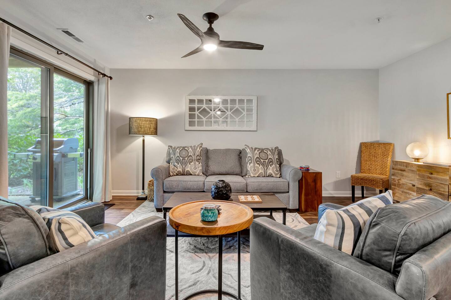 By booking this place, you are agreeing to comply to all House rules... (These are not meant to scare/intimidate anyone, but just to ensure that we are being transparent and that our guests are treating our properties with respect). ** All guests must be 25+ except for children with parents. ** It is expected that you treat the place with respect, and everything is put back the way it was when you arrived and all messes cleaned up. ** No Parties in the unit! ** No Smoking/Vaping in the unit. ** Dogs only allowed. 1 max (See below) ** No extra overnight guests unless on the reservation or approved by hosts. If you violate this rule, the fee is $25 per extra guest per night with possible eviction. ** QUIET HOURS - 10pm-8am - Please be respectful of neighbors ** Checkout is 10am. * Sorry no late checkouts in the Summer Season (Memorial Day-Labor Day) -Please be respectful of our inspection team's and cleaners' tight schedules. ** Please use the grill at your own risk. ** Please push out grill from underneath the upper deck when in use. ** Please do not put inside furniture outside. ** No trash should be left outside the unit door or on patio. Household trash/recycling must be disposed of in appropriate dumpsters outside. **Absolutely no candles should be used in this property for safety reasons. ** There is an exterior Ring camera on the front door. Please do not touch/tamper with it. **PLEASE NOTE - We supply a start of some toilet paper rolls, paper towels, garbage bags, dish & hand soap, and dish & laundry detergent for your stay - once they run out, it's on the renter to replenish as needed. **LONGER STAYS** -It is mandatory that after 2 weeks we will come to inspect the rental. After the first inspection, we will then be checking every 30 days for the remainder of your stay. - Toiletries/supplies are stocked upon arrival - once they run out, it is on the renter to replenish as needed. Pet Policy: • Dogs allowed with the additional pet fee. o Limits: 1 dog o Dogs must be leashed at all times. o Renters are responsible for cleaning up after their pets. o Waste can be disposed of in the nearby community dumpster.