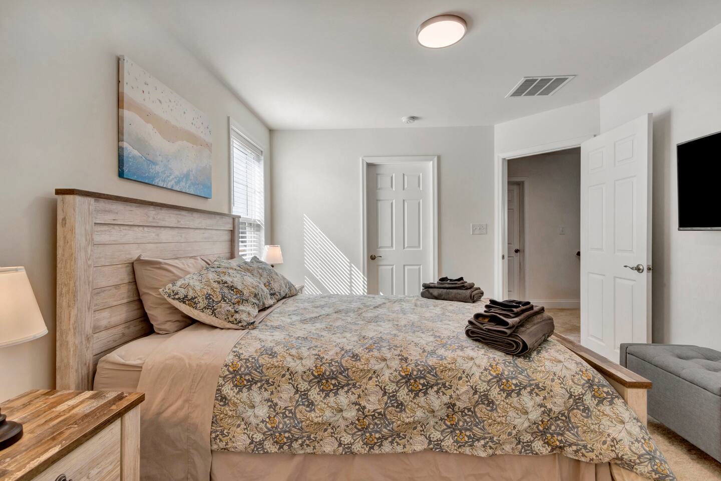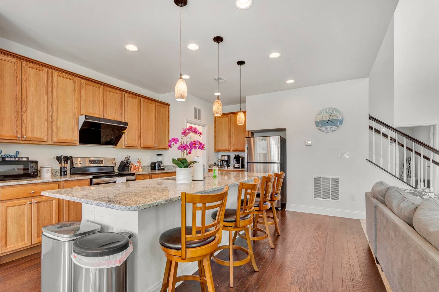 - All guests must be at least 25 years old, except for children with parents. - Can rent monthly in the off-season. *Please note - Monthly discounts are not available during the summer season (Memorial Day through Labor Day). *DEL 302 Management standard: -Linens and towels are included -Starter amounts of toilet paper for each bathroom, paper towels, trash bags, dishwasher pods, laundry detergent/pods, hand soap at each sink, and dish soap at the kitchen sink. Also, supply shampoo, conditioner, and body wash in the bathrooms. -Guests are responsible for providing anything they need beyond the starter amounts provided. Bedroom 1: King Bed with En Suite Bathroom - 1st Floor Bedroom 2: Full Bed - 1st Floor Bedroom 3: Queen Bed w/ Jack and Jill bath - 2nd Floor Bedroom 4: Queen Bed w/ Jack and Jill bath - 2nd Floor Loft Area - Twin Day Bed with Pull Out/Pop Up Twin Trundle - Converts to a King Size Bed (mattress converter provided) - 2nd Floor Living Room - Pull Out Full Sofa Bed (1st Floor) *Please note - grass cutting occurs every Friday (in season) - The day can vary due to weather. - Dogs welcome w/ $200 pet fee (1 dog max, no cats) - Dog crate available for guest use in garage OUTDOOR LIVING: - Propane Gas Grill - Outdoor Dining Table - Corn Hole (in garage) BEACH ESSENTIALS: - 12 Beach Towels - 3 Beach Chairs - 1 Beach Umbrella - 1 Beach Cooler - Corn Hole Boards INDOOR LIVING: Spacious living room with Roku smart TV, fully equipped kitchen with kitchen island, dining table, loft area with games. KITCHEN: Fully equipped, stainless steel appliances, microwave, Keurig coffee pot, regular coffee pot, electric hot water kettle, toaster, blender, dishware/flatware, pots/pans. GENERAL: High speed WiFi, washer/dryer, linens, bath towels, beach towels, hairdryers, central dual zone AC/Heat, keyless entry, coffee makers, electric hot water ketel, pots/pans, iron and ironing board. PARKING: - Driveway - 2 cars - Garage - 1 Car - Additional Parking - Community Clubhouse Parking Lot - 1 Car Max (Please do not park on the street) PROXIMITY: 0.5 miles to Beebe Walk-in Rehoboth 1 mile to Walmart 1.1 miles to Atlantic Liquors 1.3 miles to Safeway 1.3 miles to Tanger Outlets 1.8 miles to Midway Speedway & White Water Mountain 2 miles to Movies at Midway 2.5 miles to Junction & Breakwater Trail 2.7 miles to Jungle Jim's waterpark 2.9 miles to Lefty's Alley & Eats bowling/restaurant 3.5 miles to Shell We Bounce Trampoline Park 4.1 miles to Beebe Healthcare/Hospital in Lewes 4.2 miles to Rehoboth Beach & Boardwalk 5.3 miles to Lewes Beach 5.4 miles to Gordons Pond 6.2 miles to Cape Henlopen State Park