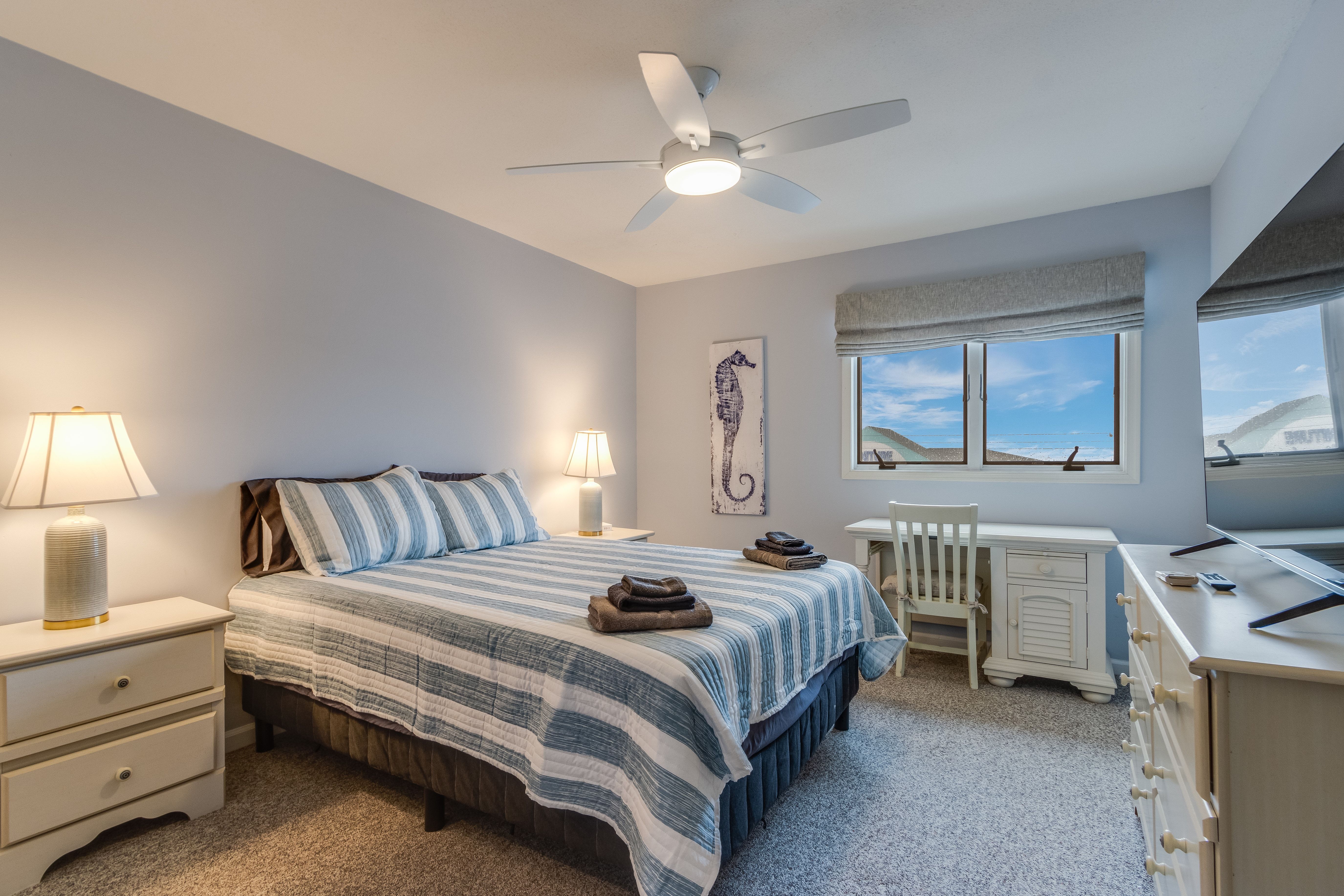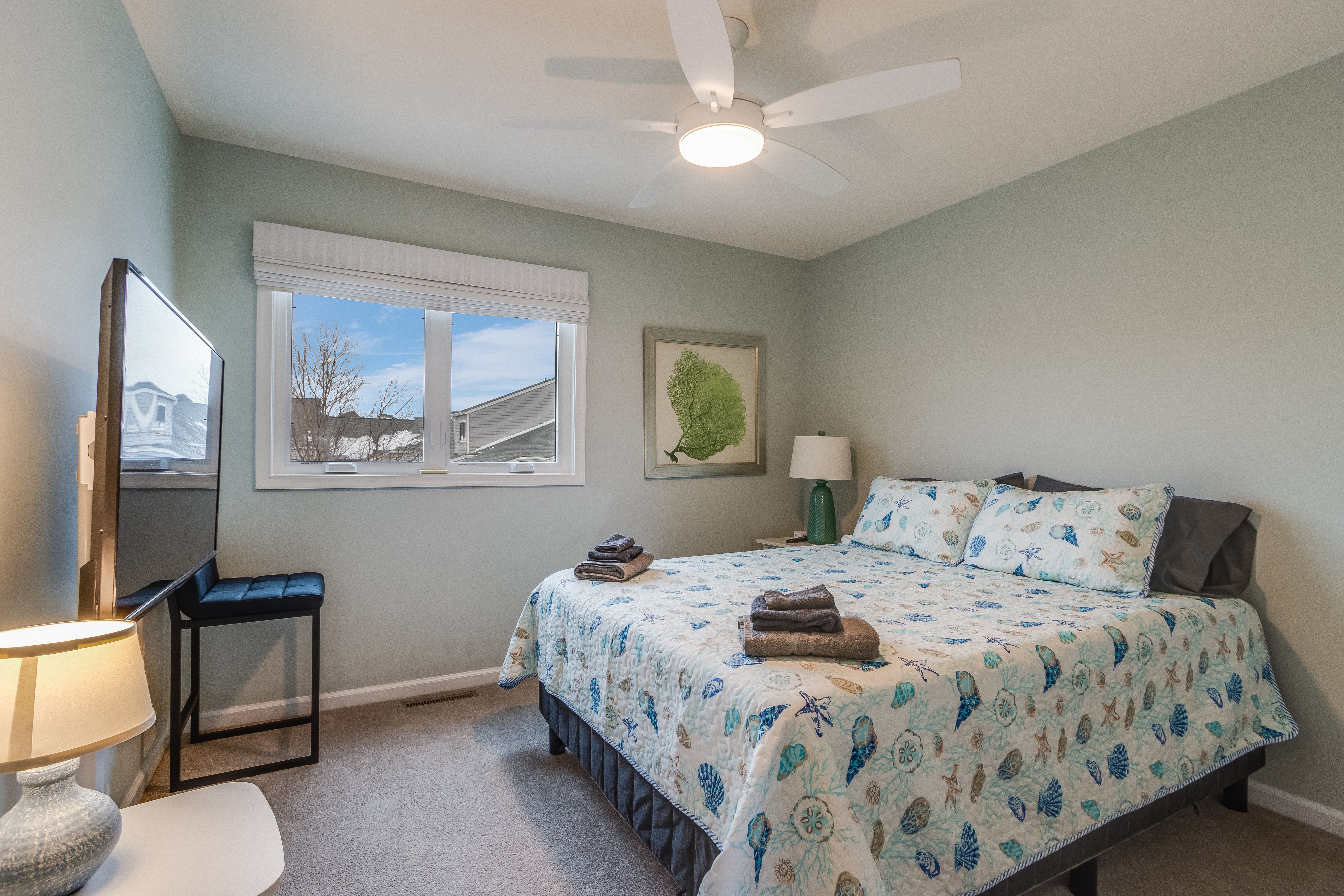 - All guests must be at least 25 years old, except for children with parents. *Please note: This property is not pet-friendly due to HOA restrictions, which do not permit renters to have pets. - Please note - Monthly discounts are not available during the summer season (Memorial Day through Labor Day). *DEL 302 Management standard: -Linens and towels are included -Starter amounts of toilet paper for each bathroom, paper towels, trash bags, dishwasher pods, laundry detergent/pods, hand soap at each sink, and dish soap at the kitchen sink. Also, supply shampoo, conditioner, and body wash in the bathrooms. -Guests are responsible for providing anything they need beyond the starter amounts provided. Bedroom 1 - King Bed - 1st Floor of Unit Bedroom 2 - Queen Bed - 2nd Floor of Unit Bedroom 3 - Queen Bed - 2nd Floor of Unit Additional Sleeping - Living Room - Queen Sectional Sleeper Sofa COMMUNITY AMENITIES (open seasonally): - Outdoor Pool - Tennis and Pickleball Courts BEACH ESSENTIALS: - 8 Beach Towels INDOOR LIVING: Spacious living room, fully equipped kitchen, TVs w/ streaming services, dedicated work space. OUTDOOR LIVING: Outdoor deck overlooking pond with table and chairs. KITCHEN: Fully equipped, microwave, Ninja dual coffee maker, hot water kettle, toaster, dishware/flatware, cooking pots/pans. GENERAL: WiFi, washer/dryer, linens, bath towels, beach towels, hairdryer, central AC/Heat, keyless entry, dual coffee maker, pots/pans. PARKING: - 1 assigned spot with unit number - Additional unmarked spots for extra parking PROXIMITY: 0.3 miles to Harpoon Hanna's restaurant and bar 0.3 miles to Island Watersports rentals 0.4 miles to Fenwick Island Beach and Boardwalk 0.4 miles to Catch 54 restaurant 0.4 miles to Fenwick Fun Park waterpark and Viking Golf & Go-Karts 0.4 miles to Nick's Mini Golf 0.4 miles to Lighthouse Rd Beach 1.5 miles to AlleyOops Uptown arcade 2.2 miles to Fenwick Island State Park Concessions area 6.9 miles to Bethany Beach Boardwalk 19 miles to Rehoboth Beach & Boardwalk 20 miles to Tanger Outlets