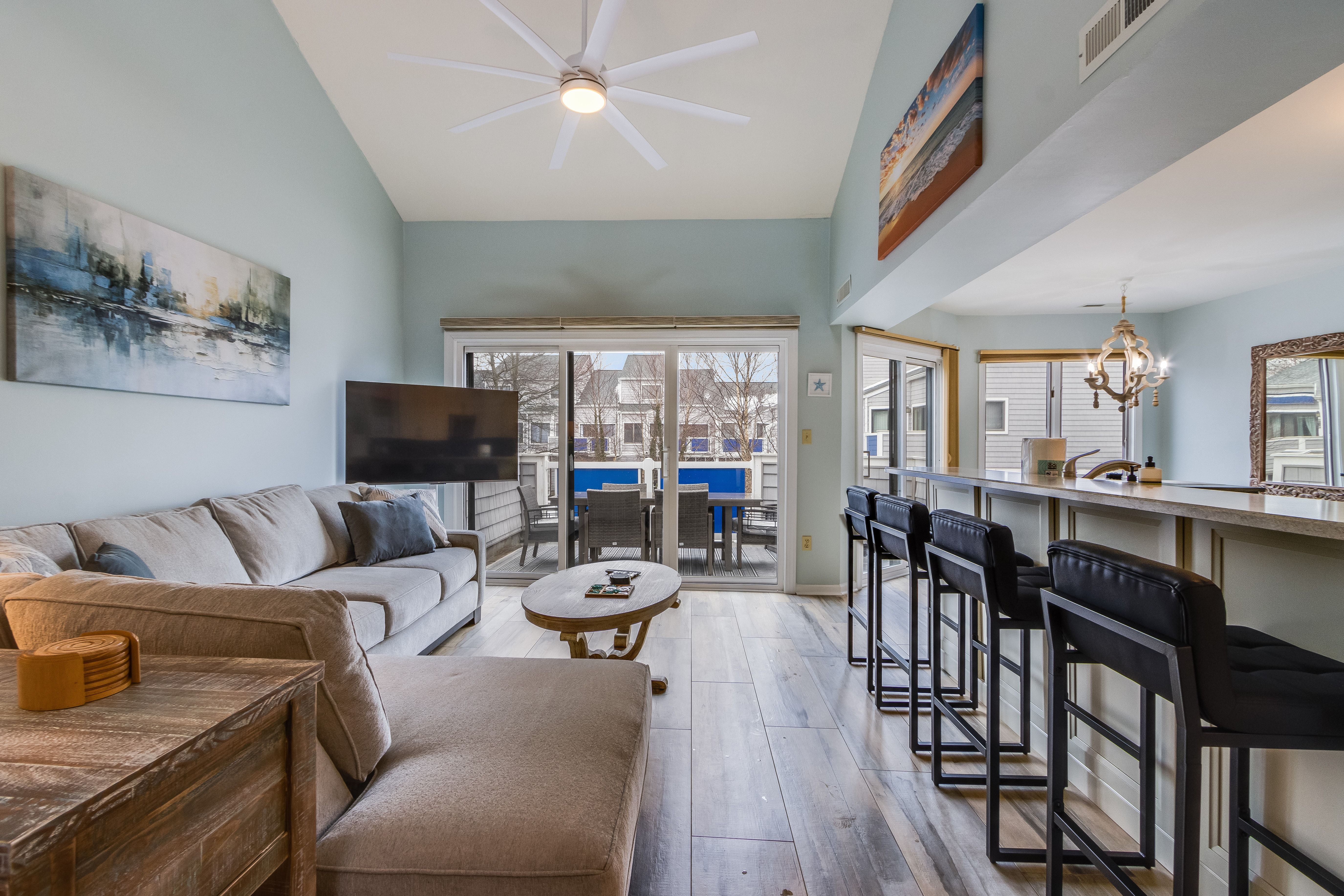 Enjoy a stylish coastal escape at this centrally located Fenwick Island home! Featuring spacious living areas, a fully equipped kitchen, and comfortable bedrooms, it’s perfect for families or groups. Relax on the private deck overlooking a peaceful pond or enjoy access to the community pool, tennis, and pickleball courts (seasonal). Just 0.4 miles to the beach/boardwalk and right across the street from Harpoon Hanna’s restaurant and Island Watersports rentals - walk to everything you need!