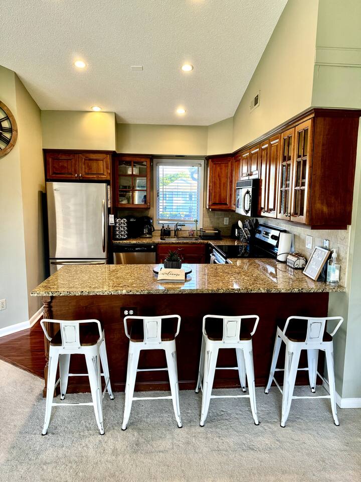 By booking this place, you are agreeing to abide to our House Rules. (These are not meant to scare/intimidate anyone, but just to ensure that we are being transparent and that our guests are treating our properties with respect). **Guest must be at least 25 years of age to book. **It is expected that you treat our place with respect and everything is put back the way it was when you arrived and all messes cleaned up. **No extra overnight guests unless on the reservation or approved by hosts. If you violate this rule, the fee is $25 per extra guest per night, with possible eviction. **QUIET HOURS - 10pm-8am - Please be respectful of neighbors **Absolutely No Smoking/Vaping in the unit. ** No PARTIES in the unit!! **No Pets in the unit. ** Checkout is 10am. *Sorry no late checkouts in the Summer Season (Memorial Day-Labor Day) -Please be respectful of our inspection team's and cleaners' tight schedules. **Please do not touch or use fireplace. **Please do not put inside furniture outside **Black "makeup" towels are provided so please do not use the white towels for makeup removal. **No clothes, towels, blankets, etc., are permitted on the front railings for drying or airing. **Persons using the community pool do so at their own risk and accept full liability. Pool info will be provided in the House Manuel in the condo. (*Pool open Memorial Day - Labor Day*) **No trash should be left outside condo door on the balcony or in the stairway. Household trash must be bagged, tied and disposed of at the community dumpsters located in the community center parking lot (located right off of the roundabout). **Charcoal/Open flame grilling is strictly prohibited under all circumstances. **Absolutely no candles should be used in this property! **Please do no leave the microwave light above the stove on overnight or for long periods of time. **Charging of electric vehicles/bikes is not permitted on the property for safety and insurance reasons. Please use the local charging stations nearby. **PLEASE NOTE - We supply a start of some toilet paper rolls, paper towels, garbage bags, dish & hand soap, and dish & laundry detergent for your stay - once they run out, it's on the renter to replenish as needed. **LONGER STAYS**(monthly) -It is mandatory that after 15 days we will come to inspect the rental. After the first inspection, we will then be checking every 30 days for the remainder of your stay. -Toiletries/supplies are fully stocked upon arrival - once they run out, it's on the renter to replenish as needed.