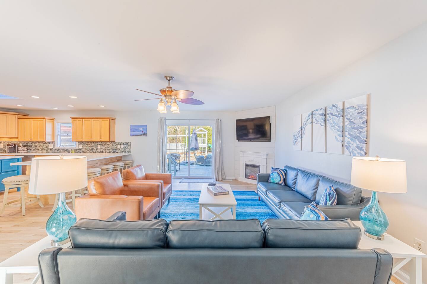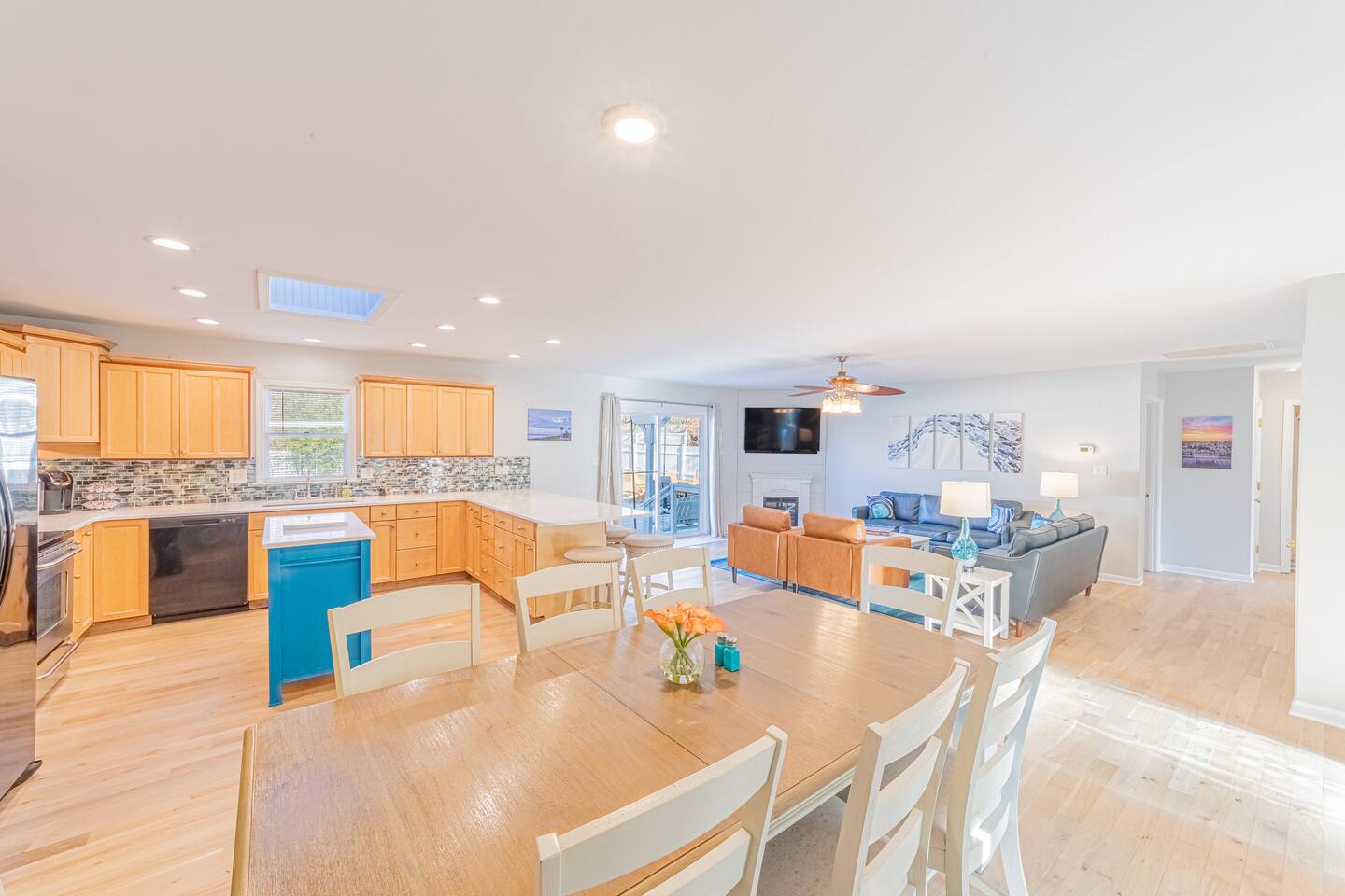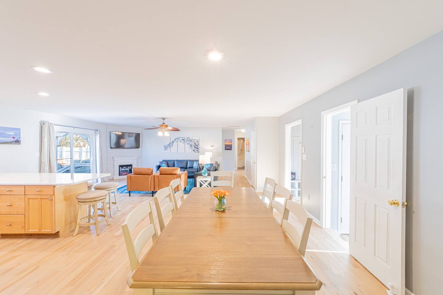 - All guests must be at least 25 years old, except for children with parents. -Linens and towels are included with this property. *We supply starter amounts of toilet paper for each bathroom, paper towels, trash bags, dishwasher pods, laundry detergent/pods, hand soap at each sink, and dish soap at the kitchen sink -Guests are responsible for providing anything they need beyond the starter amounts provided. -Pet friendly (dogs only, up to 2 max) -Huge kitchen with new quartz counters -Kitchen counter seating for six -Dining room table and chairs for 8 -Beautiful genuine leather sofa, loveseat, and two chairs -Whitewashed solid oak floors -Comfortable new Sealy mattresses -Smooth 100% Egyptian cotton sateen sheets -3 kings, 1 full, and 6 twin beds -Sprawling private fenced backyard on almost 2/3 acre -Backyard swing set, slide combo -Spacious deck with comfortable patio seating -Beachy wood-burning firepit with 12 Adirondack chairs -Outdoor dining table with super-comfy swivel rocker high back chairs -Stylish beachy décor for walls and floor rugs -New Blackstone grill/griddle with 4 burners *Please note - there may be an extra cleaning fee if your stay is 14 days or longer. *As of July 1, 2022, retailers in the State of Delaware no longer provide a plastic carryout bags made from film at checkout. Instead, they now provide customers access to a reusable bag for purchases, or you may bring your own.