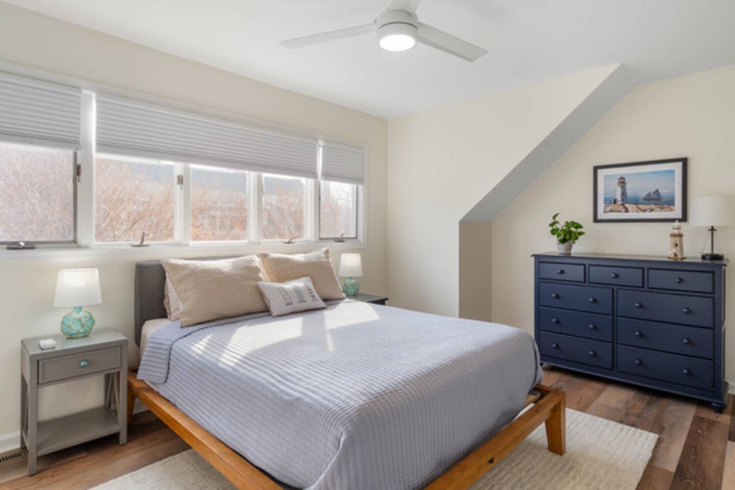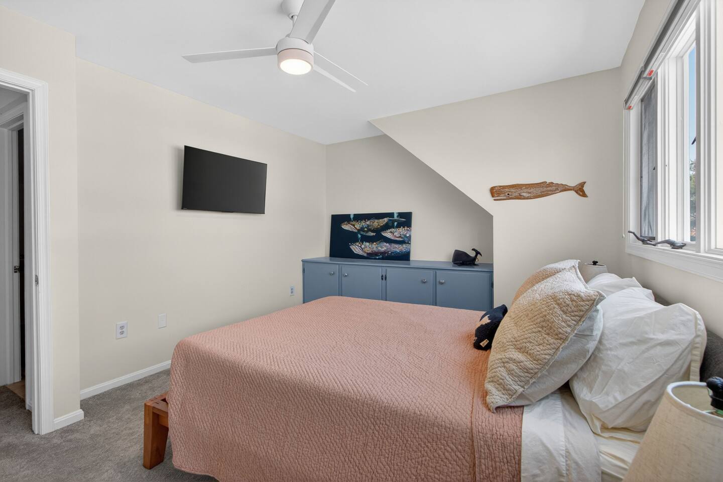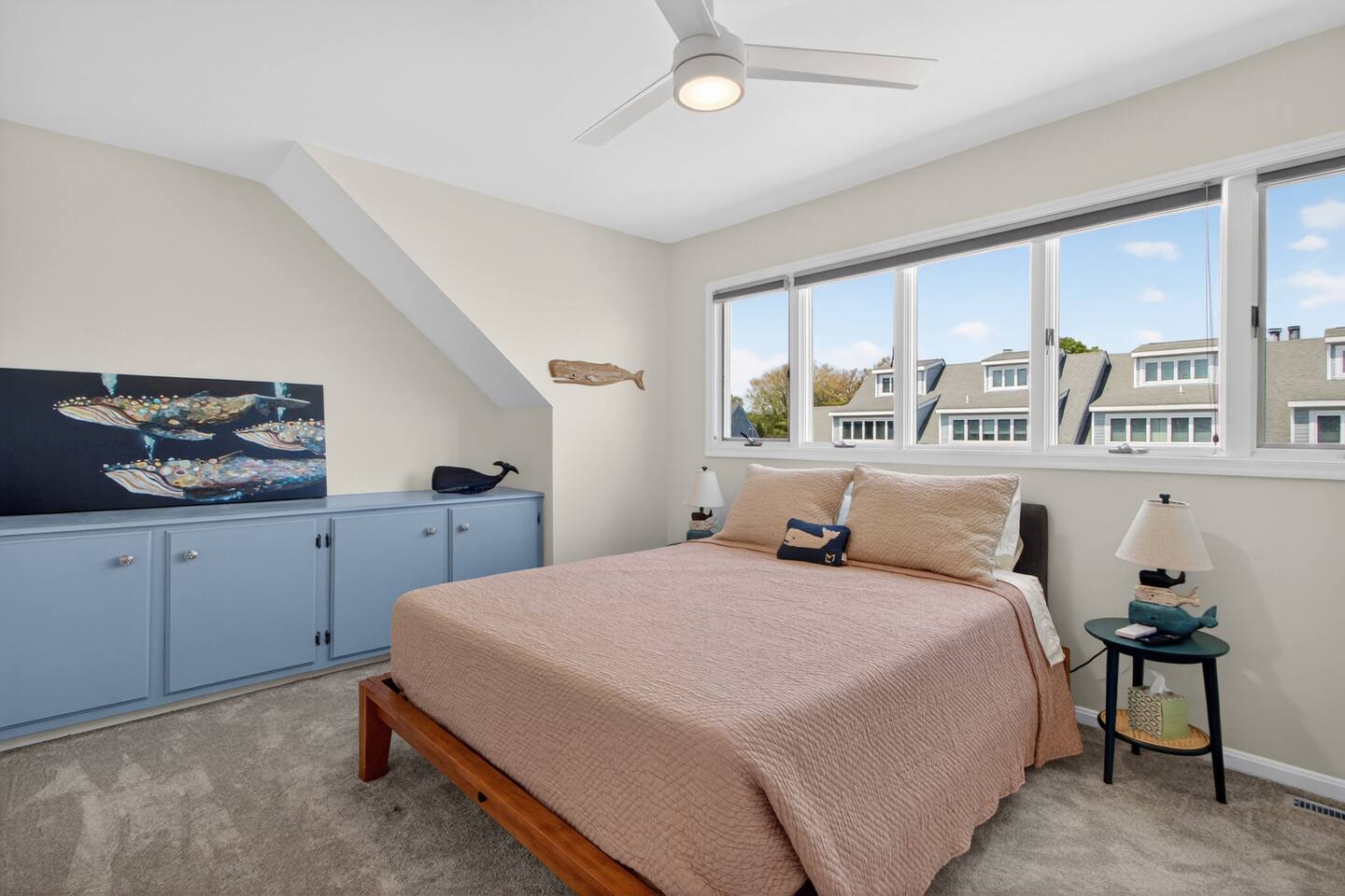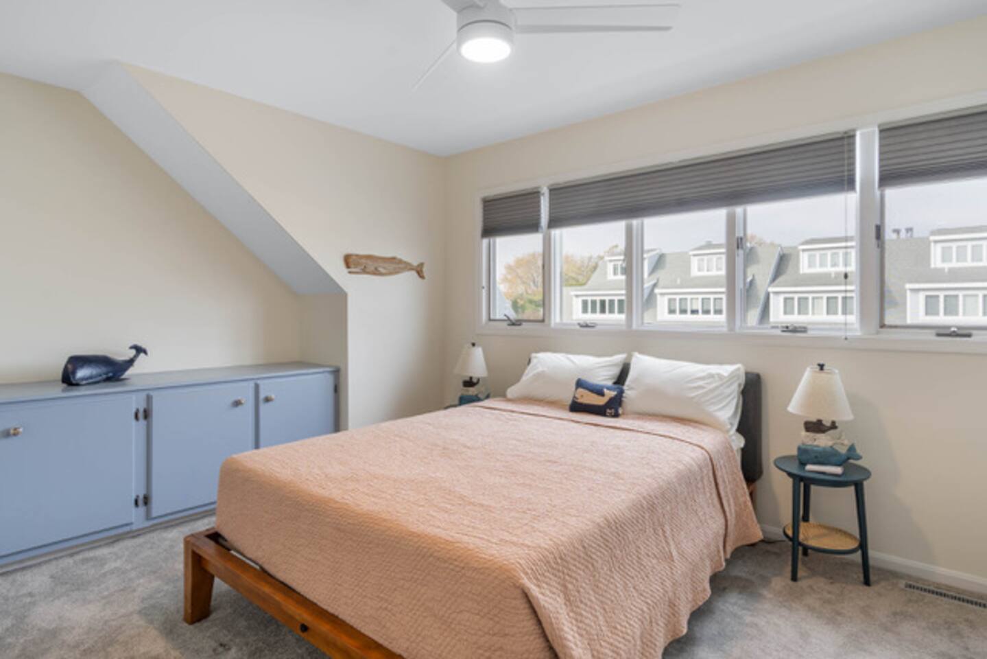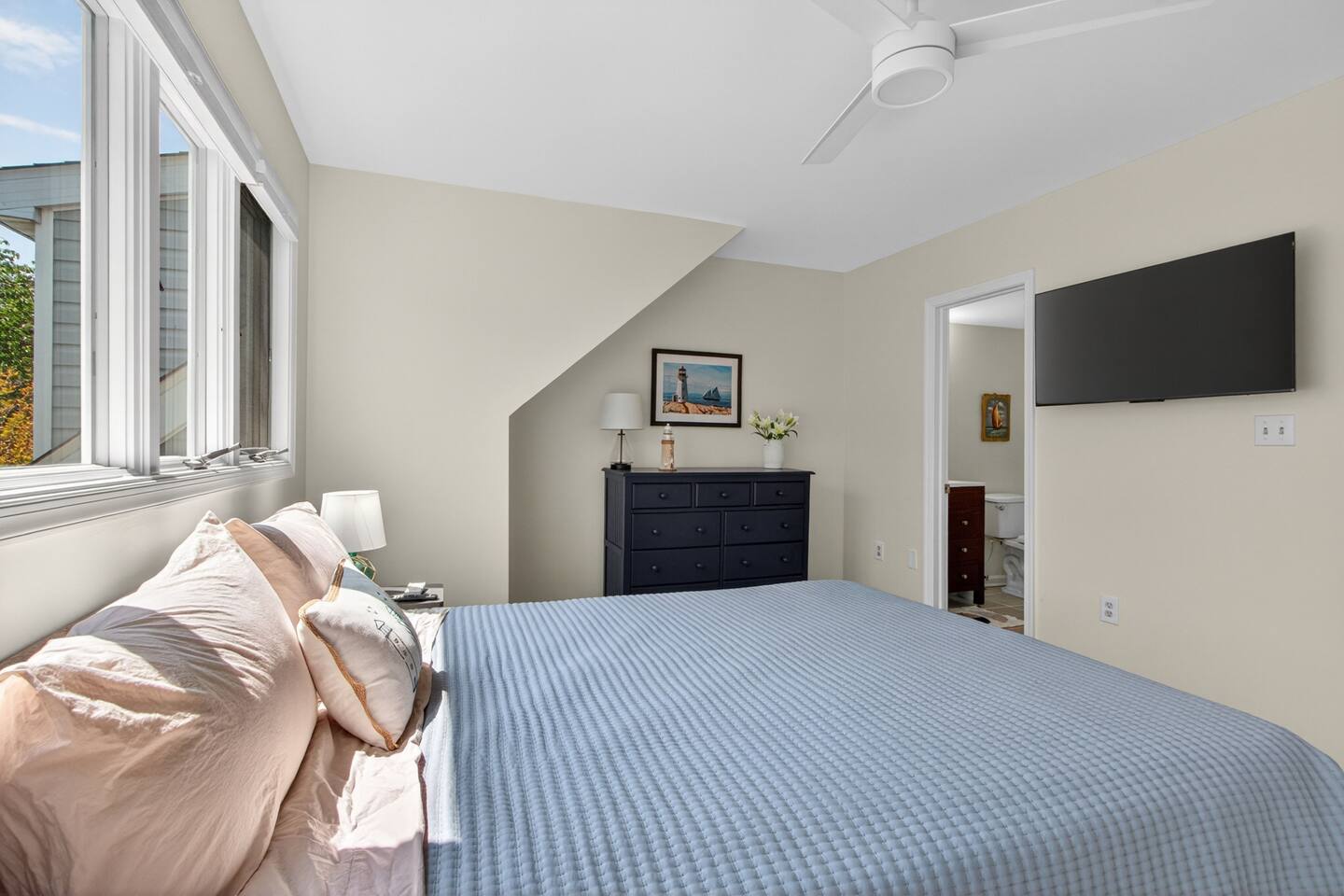- All guests must be at least 25 years old, except for children with parents. - Please note - Monthly discounts are not available during the summer season (Memorial Day through Labor Day). *DEL 302 Management standard: -Linens and towels are included -Starter amounts of toilet paper for each bathroom, paper towels, trash bags, dishwasher pods, laundry detergent/pods, hand soap at each sink, and dish soap at the kitchen sink. Also, supply shampoo, conditioner, and body wash in the bathrooms. -Guests are responsible for providing anything they need beyond the starter amounts provided. Bedroom 1 - Queen Bed w/ en suite Bathroom - "Lighthouse Room" - 2nd Floor Bedroom 2 - Queen Bed - "Whale Room" - 2nd Floor Bedroom 3 - 2 Twin Beds - "Shark Room" - 3rd Floor - Half Bathroom on 1st Floor - Hallway Bathroom with bathtub on 2nd Floor. INDOOR LIVING: Spacious living room, kitchen, TVs w/ streaming services, dining table, coffee bar. *Please note - fireplace is off limits to guests. OUTDOOR LIVING: Patio with propane gas grill, outdoor table, and outdoor shower. KITCHEN: Fully equipped, microwave, Keurig coffee maker, hot water kettle, toaster, dishware/flatware, cooking pots/pans, electric stove. GENERAL: WiFi, linens, bath towels, hairdryer, central AC/Heat, coffee maker, pots/pans. PARKING: - 2 labeled assigned parking spaces - Additional overflow spots on sides of buildings PROXIMITY: 0.3 miles to Vino Del Mar wine bar 0.4 miles to Lewes-Georgetown Trail 0.5 miles to Lewes Brewing Company 0.5 miles to Big Oyster Brewery 0.5 miles to Mr P's Pizzeria 0.8 miles to The Station on Kings restaurant 1.2 miles to Crooked Hammock Brewery 1.4 miles to downtown Lewes with all restaurants & shops 2.5 miles to Lewes Beach (Savannah Beach) 2.7 miles to Old World Breads Bakery 2.8 miles to Nassau Valley Vineyards/Winery 3.4 miles to Cape Henlopen State Park