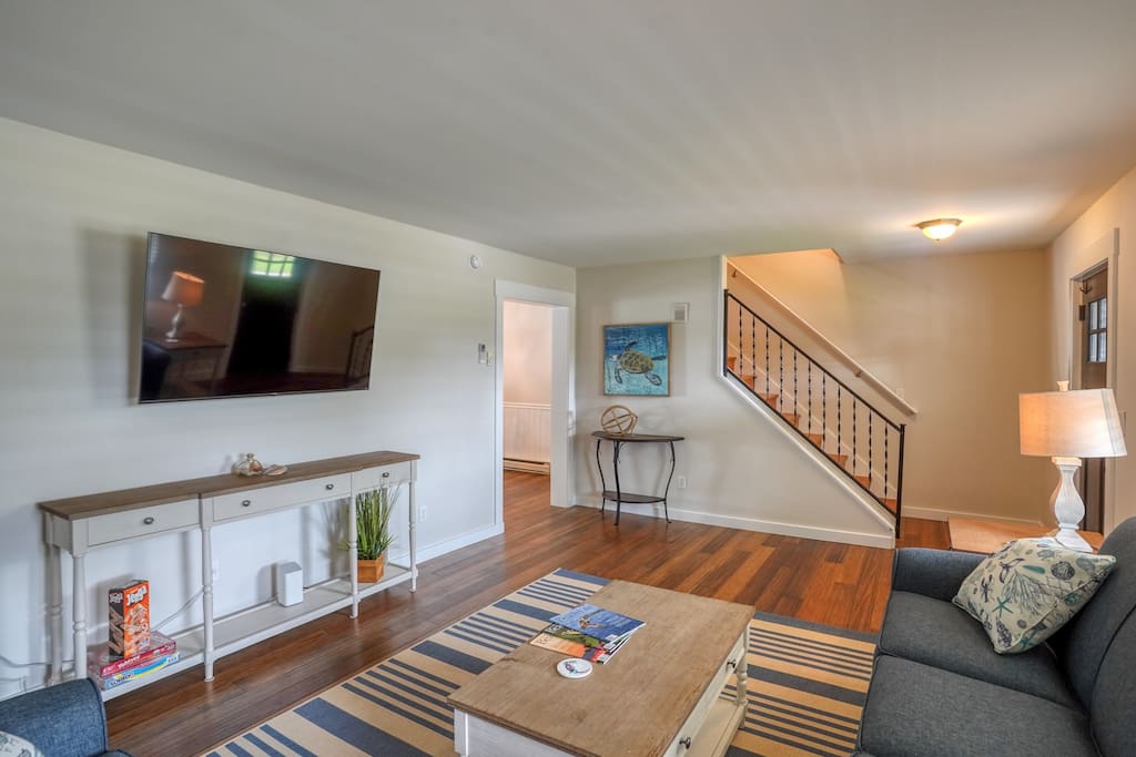 *This property can be rented monthly in the off season (Sept-April) - please submit an inquiry. - Please note - Monthly discounts are not available during the summer season (Memorial Day through Labor Day). *All guests must be 25 years old, except for children with parents. **DEL 302 Management standard: -Linens and towels are included -Starter amounts of toilet paper for each bathroom, paper towels, trash bags, dishwasher pods, laundry detergent/pods, hand soap at each sink, and dish soap at the kitchen sink. Also, supply shampoo, conditioner, and body wash in the bathrooms. -Guests are responsible for providing anything they need beyond the starter amounts provided. As you walk into the rental the first floor living room opens up to a updated kitchen. Off the kitchen is the hang out back yard/Deck, there you can grill out, play corn hole, relax or take a quick outdoor shower(open seasonally). When you walk upstairs you will find a fully stocked bathroom and two bedrooms. -Bedroom 1 - King Bed - Bedroom 2 - 2 Twin Beds (Each bedroom has a flat screen television). Our community is right down the road from the Lewes-Georgetown Bike Trail for you to enjoy with your bikes. It is 0.2 miles away, located right after The Station At Kings restaurant. This trail also connects to The Breakwater-Junction Trail, which is a 17 mile loop route that goes from Lewes to Rehoboth Beach. You may store your bikes in the shed as well during your stay.